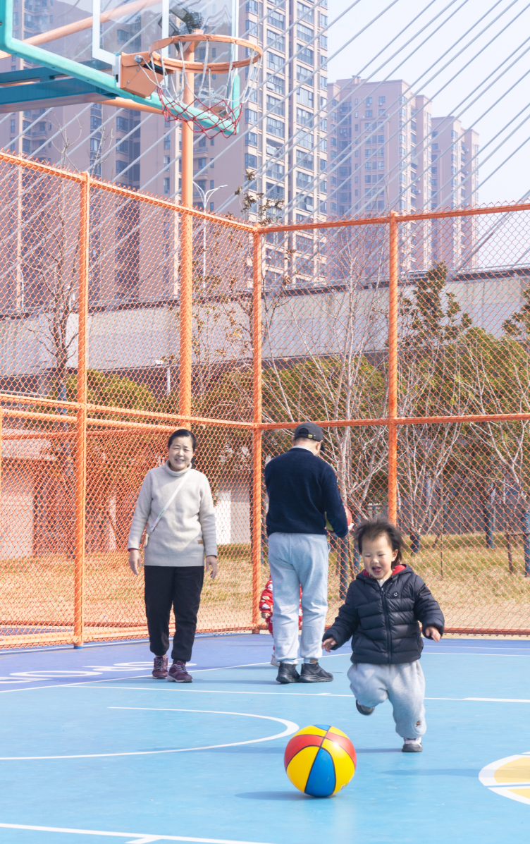 拉伸放松区、儿童乐园、篮球场