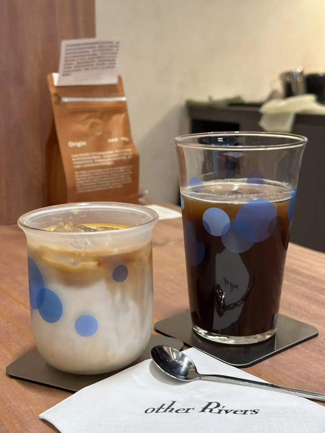 每款手冲咖啡都配备陶瓷杯和玻璃杯