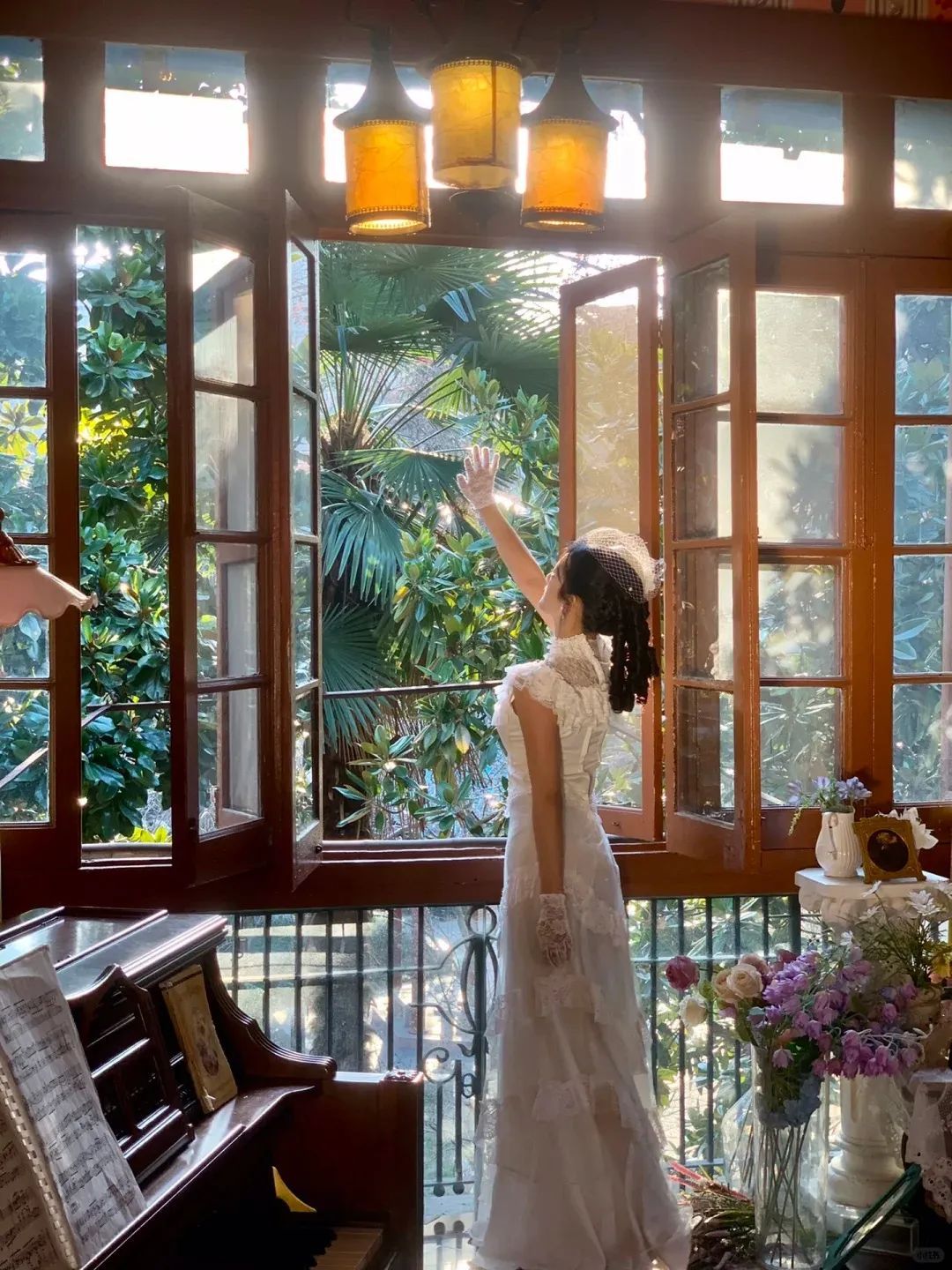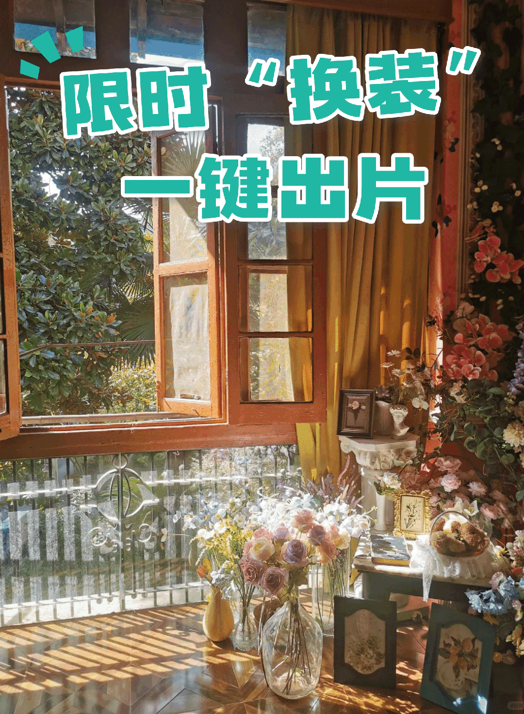 位于黎黄陂路上的The art house艺间·古董换装影像馆,不同于传统意义的摄影棚,仿佛是将莫奈的花园巧妙地搬进了这座充满复古韵味的洋房中。