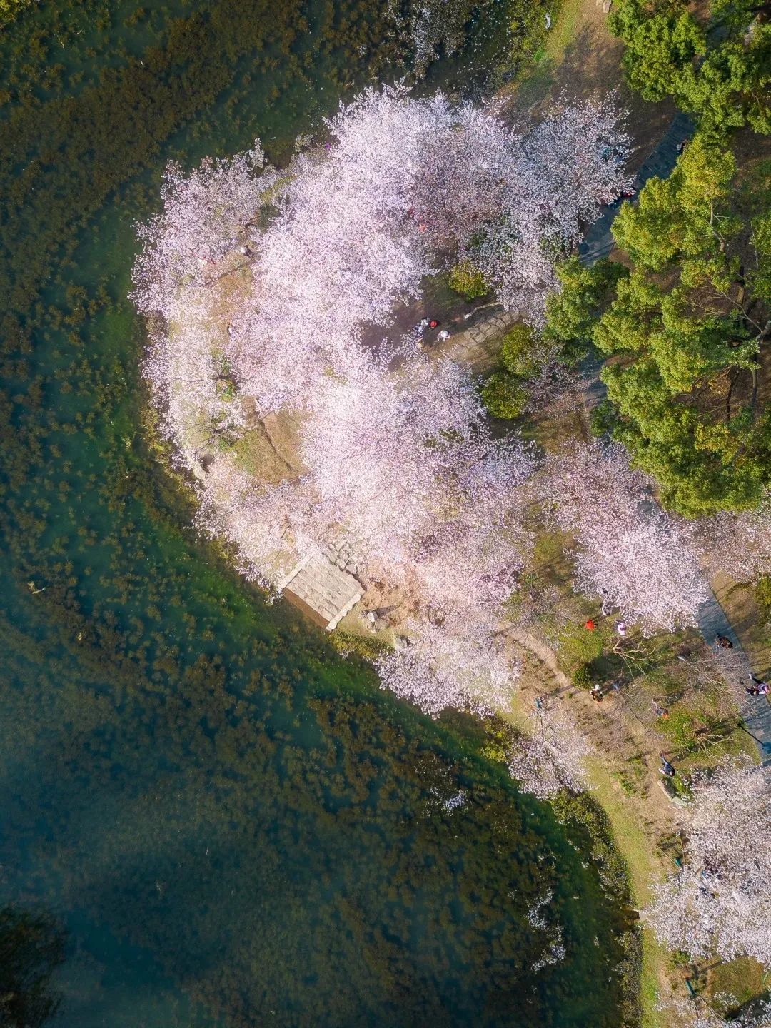 小tips:浅色系的衣服与樱花更配哦!可采取低角度仰拍,利用花瓣前景虚化人群。