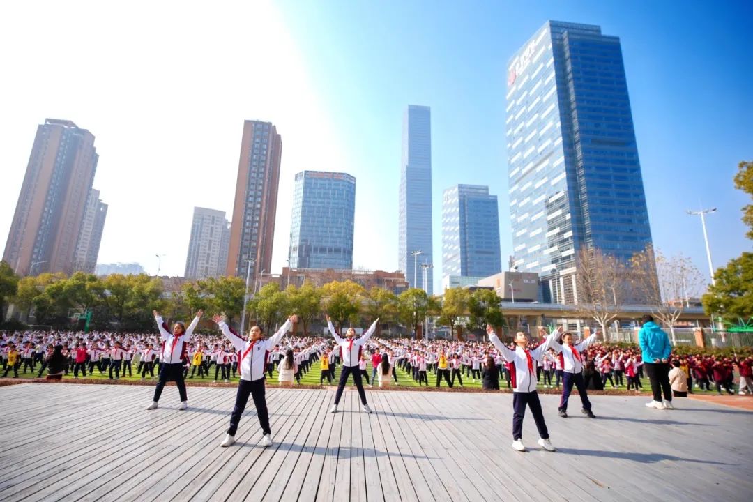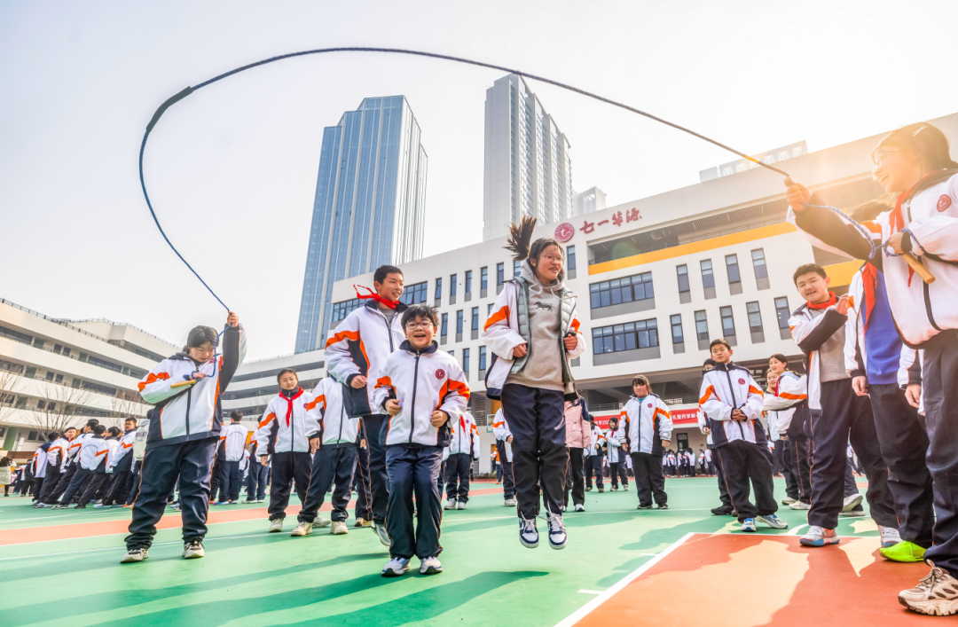 ■ 武汉市七一华源中学滨江校区学生大课间跳长绳活动