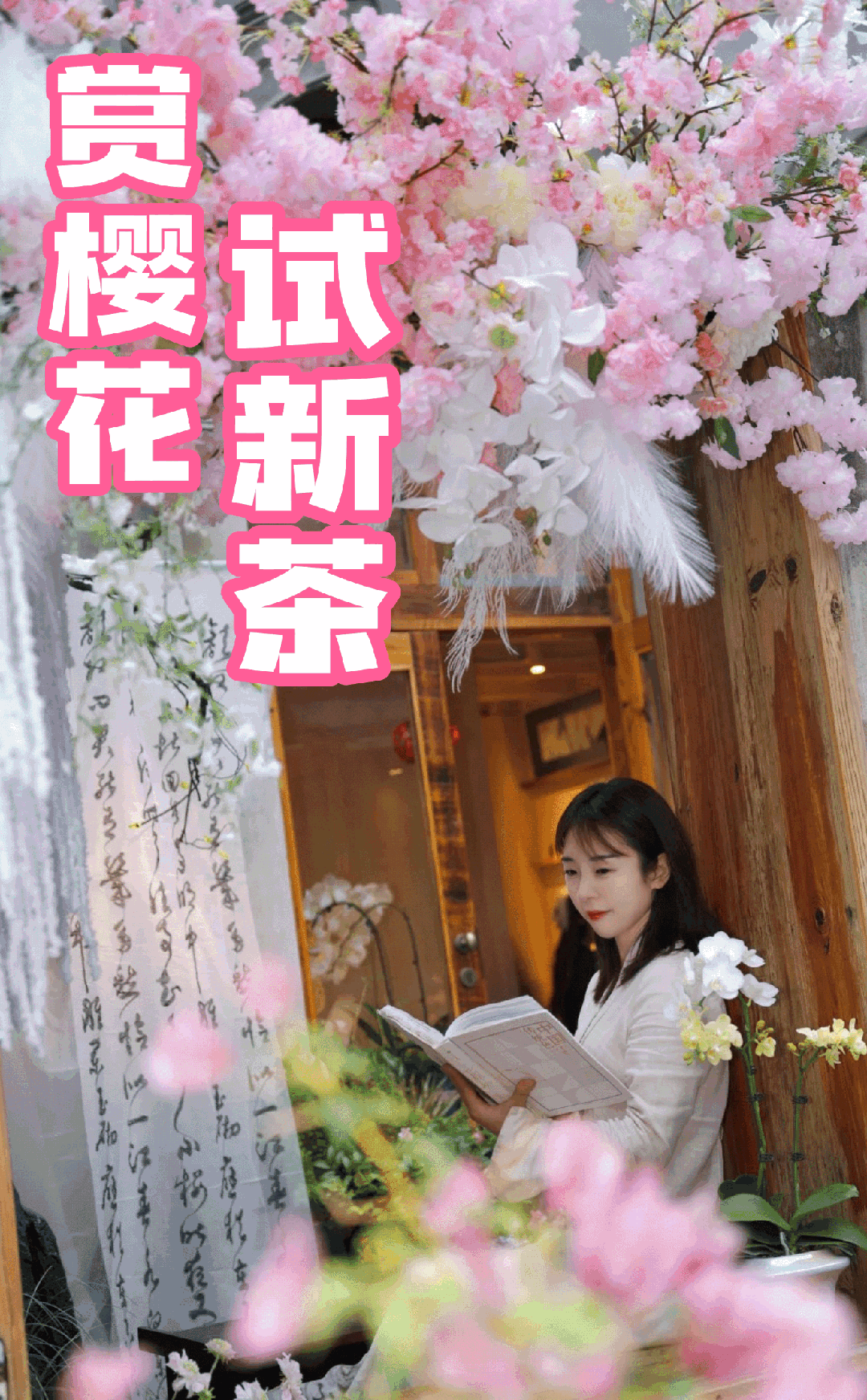 在落地窗边的观雨位上,炭炉上正温着老白茶,落在杯中的樱花倒影也会让人纠结,到底应该选择哪一张发朋友圈呢?