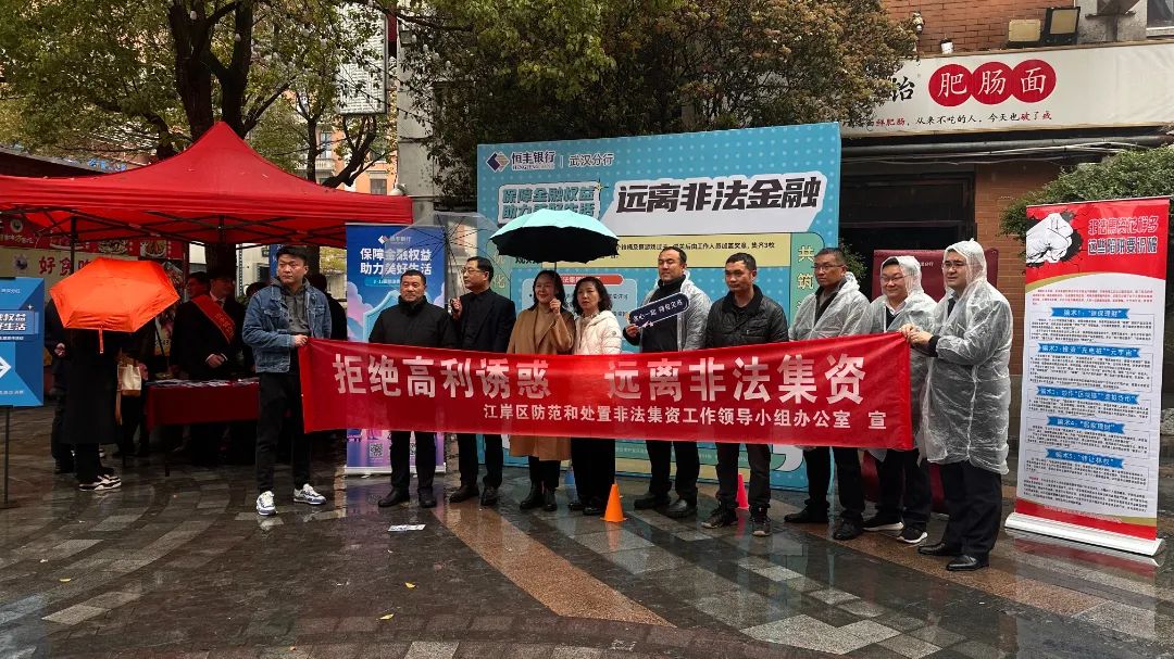 大智街道联合恒丰银行武汉分行在吉庆街开展反诈骗和防非处非宣传活动,通过展板、手册和案例讲解,增强居民风险防范意识。