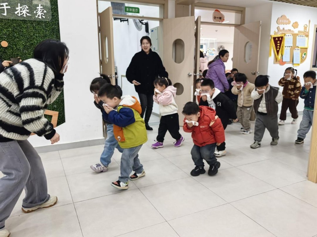 劳动街道苗栗社区联合鄂城墩幼儿园(中澳园区)及永清街消防救援站开展消防疏散演练,以“模拟真实场景+沉浸式学习”的形式帮助师幼掌握火灾逃生技能,提升“知危险、会避险”的自我保护能力。