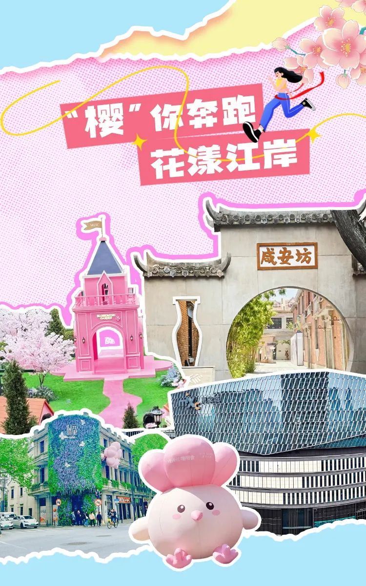 三月的江岸,被染上一层温柔的粉,当樱花树悄然舒展花瓣,江岸各商圈的橱窗也默契地换上了春日新装。