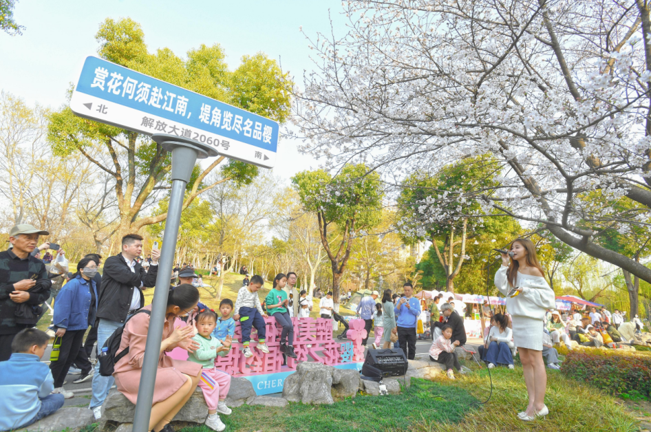 区文旅局联合区园林局在堤角公园开展“香漫堤角,樱约江岸”樱花季活动,现场有樱花造型文创雪糕、非遗手作体验,还有机器人互动、AI樱姿挑战赛、国潮动漫巡游、露天音乐会等丰富活动,通过文化+科技+生态多元模式,创新呈现城市春游新场景。