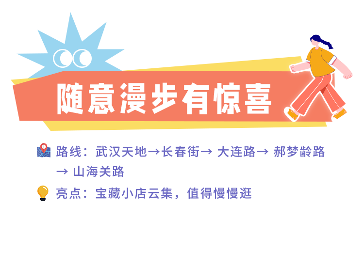 从武汉天地出发,慢悠悠走过大连路、长春街、郝梦龄路。菜市场里开书店、裁缝店隔壁是咖啡馆、面包店开在小独栋里......各种特色店铺与居民区和谐共处,一半烟火、一半文艺。