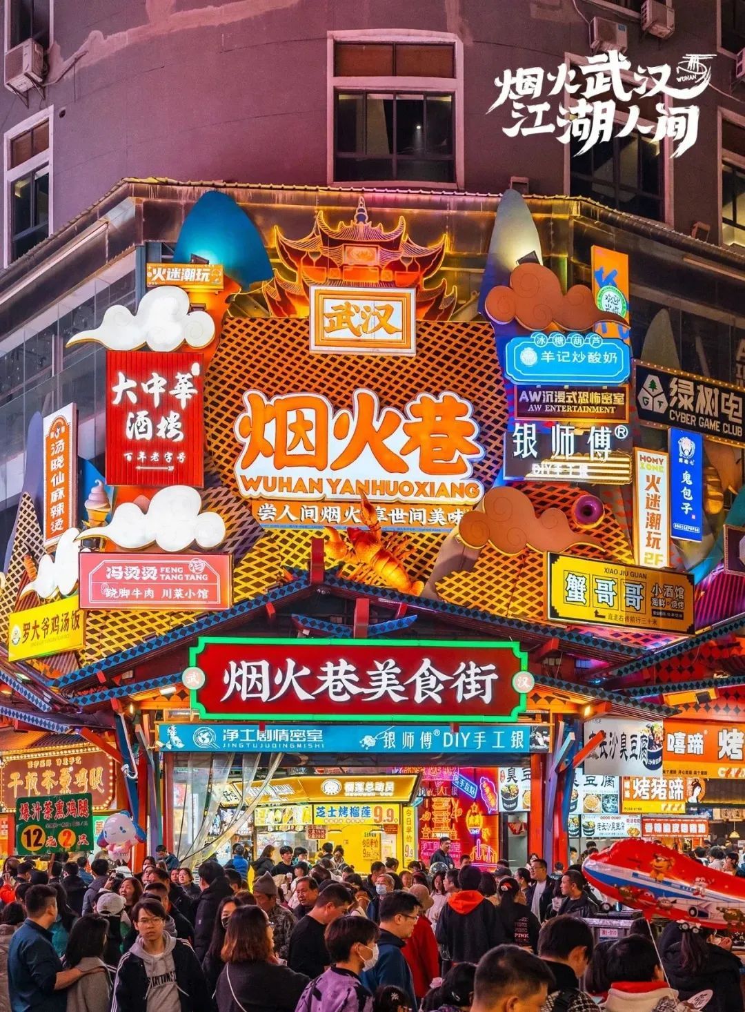 倘若饿了,推荐去春晚武汉分会场取景地烟火巷美食街,感受流光溢彩的灯光,打卡春晚同款美食。