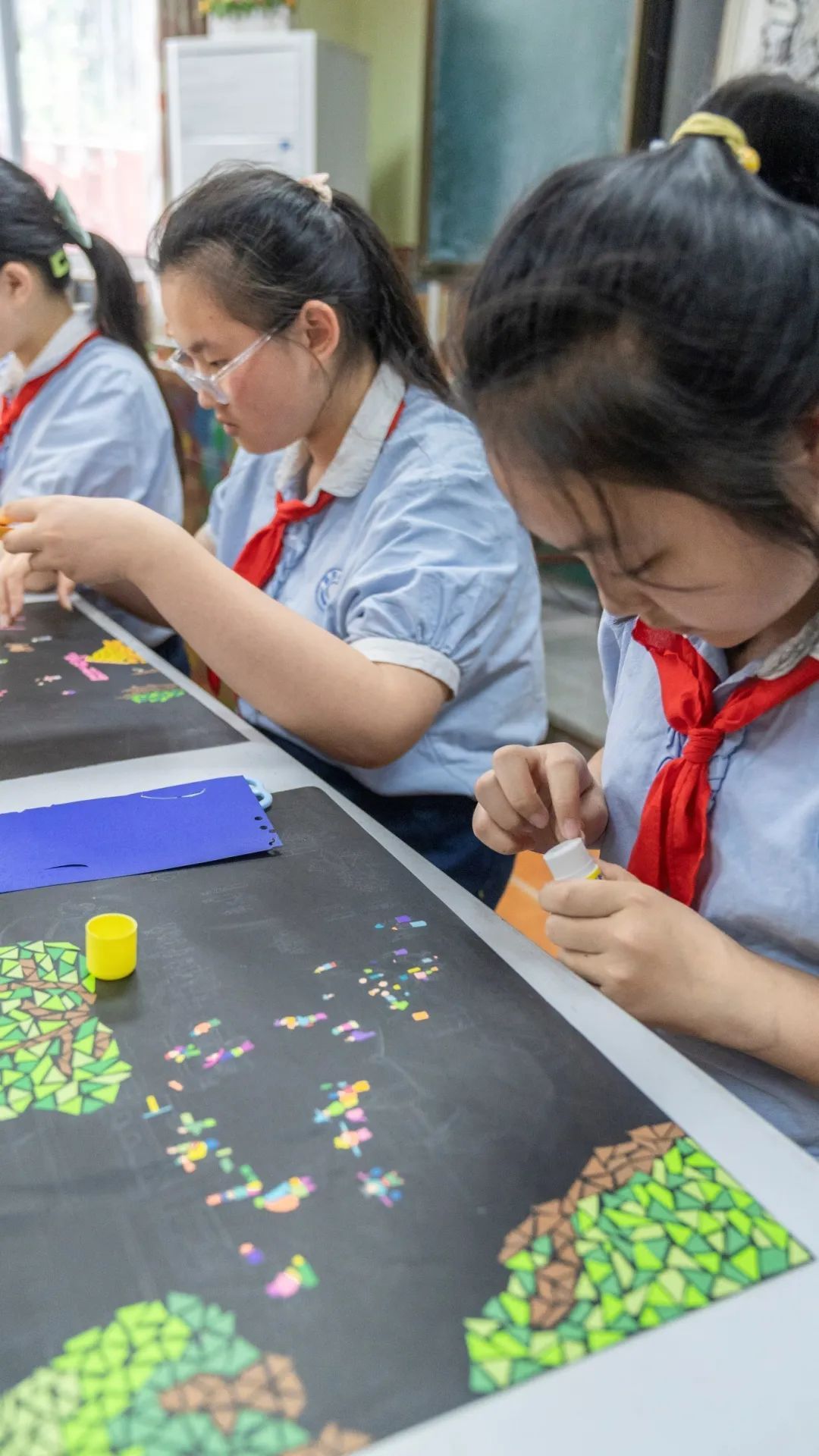 “点彩贴画需要耐心和色彩感知力。”该校美术老师介绍,学生需先将彩色卡纸剪成点状,再通过排列组合形成立体效果。