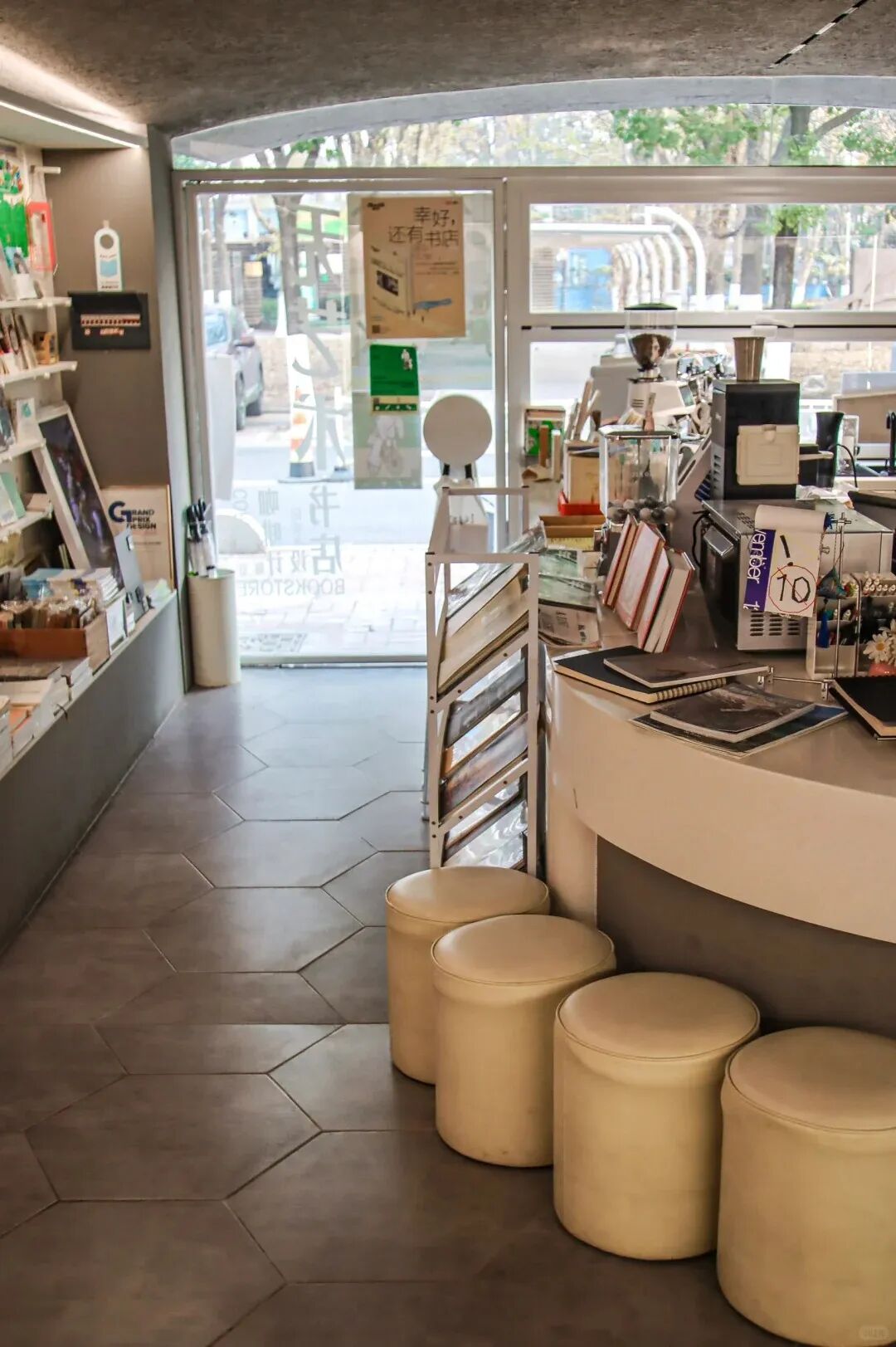 在书店中央半圆形的咖啡吧台,点一杯手冲或贝果,坐在靠窗的位置,江风穿堂而过,翻书的沙沙声和咖啡香交织,时间在这里变得缓慢。