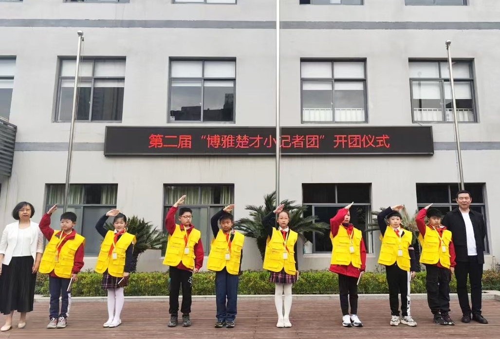 博雅小学楚才报小记者团——“博雅团”开团,50余名学生获颁小记者证。学校将通过“楚才”文化培育,借力“楚才报小记者团”社会实践活动,提升学生素质教育水平。