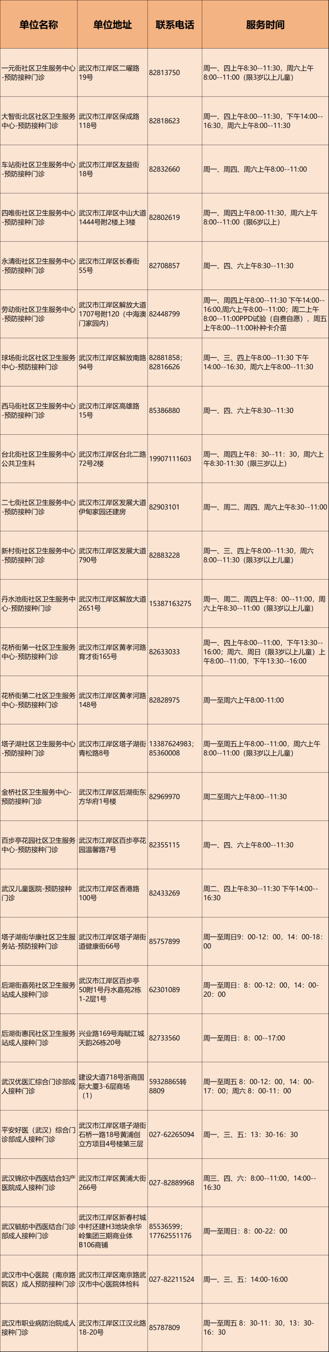 江岸区的预防接种门诊信息