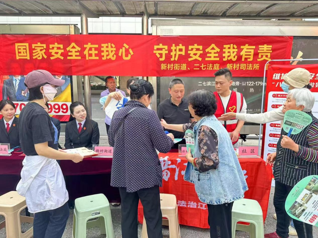 新村街道联合二七法庭、新村司法所等单位,在徐州新村公交车站开展“国家安全教育日活动”,将国家安全教育融入日常生活。