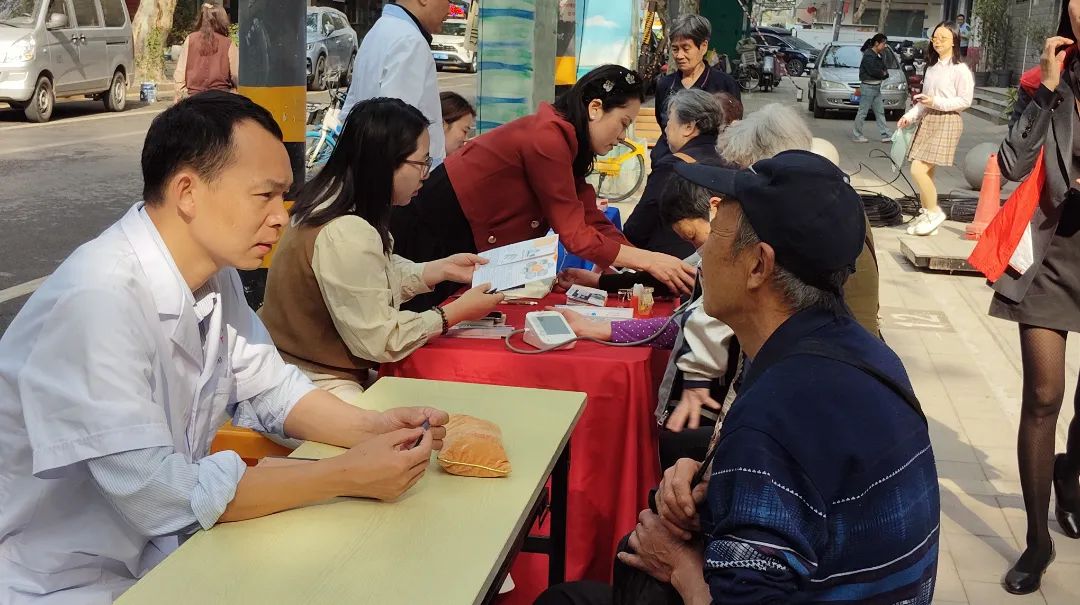 区委宣传部联合车站街道、汉口医院在辅堂社区开展“健康行动在身边 便民服务惠万家”文明实践活动。现场通过为居民提供血压血糖检测、慢性病咨询等服务,将优质医疗资源送到居民家门口,把暖心关怀送到群众“心坎上”。