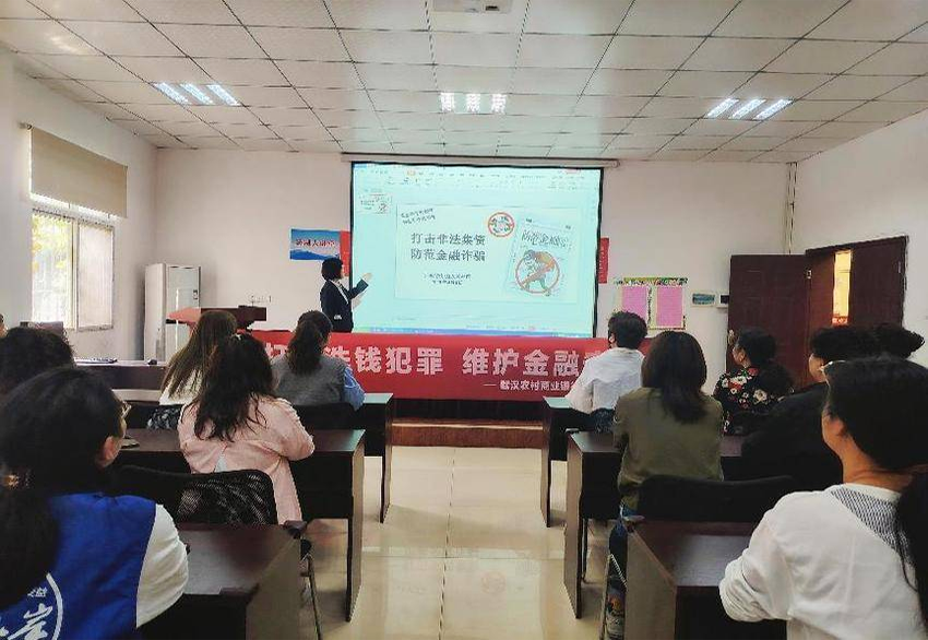 丹水池街道汉黄社区联合武汉市农村商业银行开展“打击非法集资,防范金融诈骗”宣传活动。工作人员讲解常见诈骗手段,发放宣传资料,呼吁居民理性理财,增强防诈意识。