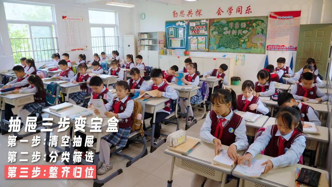■ 武汉市育才同安小学学生在进行抽屉整理