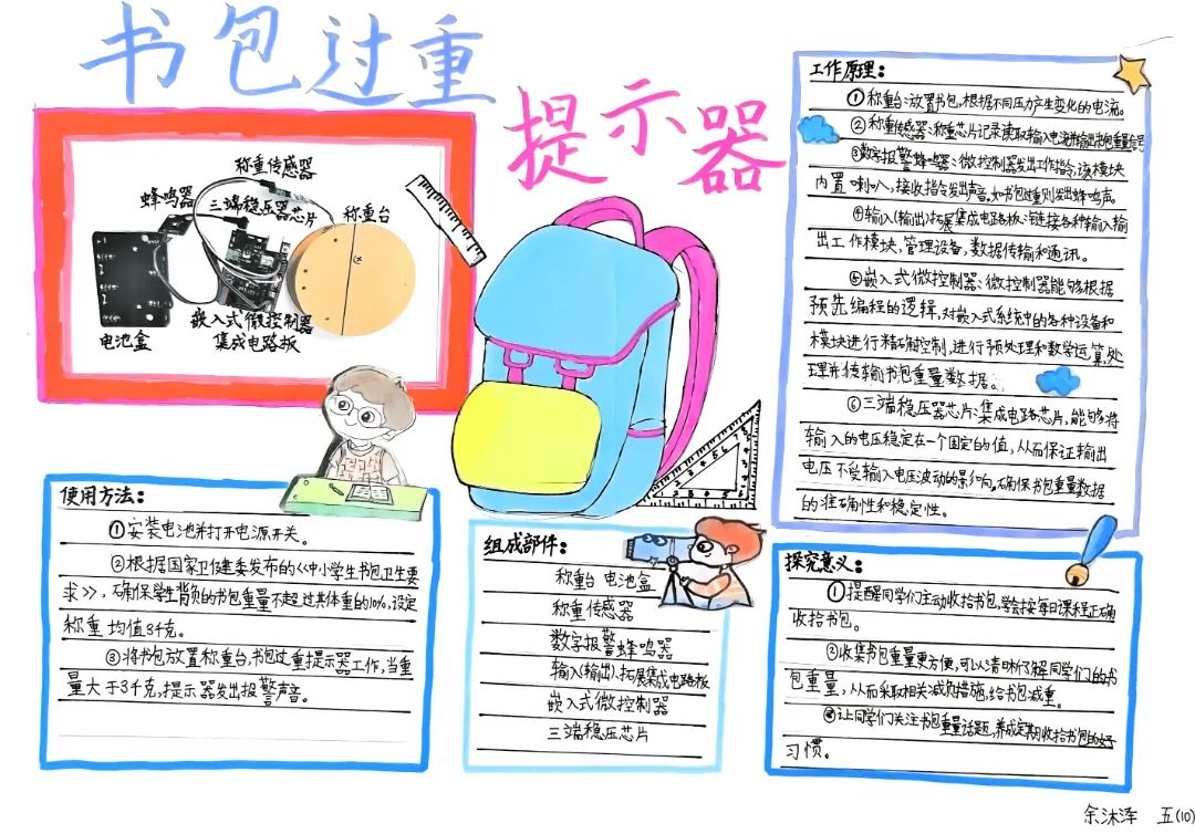 科学老师引导学生深入探究,从书包材质、容量等因素入手,亲自动手实验、收集数据,分析如何切实减轻书包重量,并制作研究报告。美术学科鼓励学生将自己减轻书包及有效整理的经验,以充满创意的漫画形式呈现出来,在全校进行交流展示。信息技术老师带领学生运用AI智能技术,为书包整理制定最优化方案,甚至还可以制作书包感应器,实时提醒整理书包。通过学科互涉,全方位调动了学生探究的积极性,提升了他们的自主能动性。