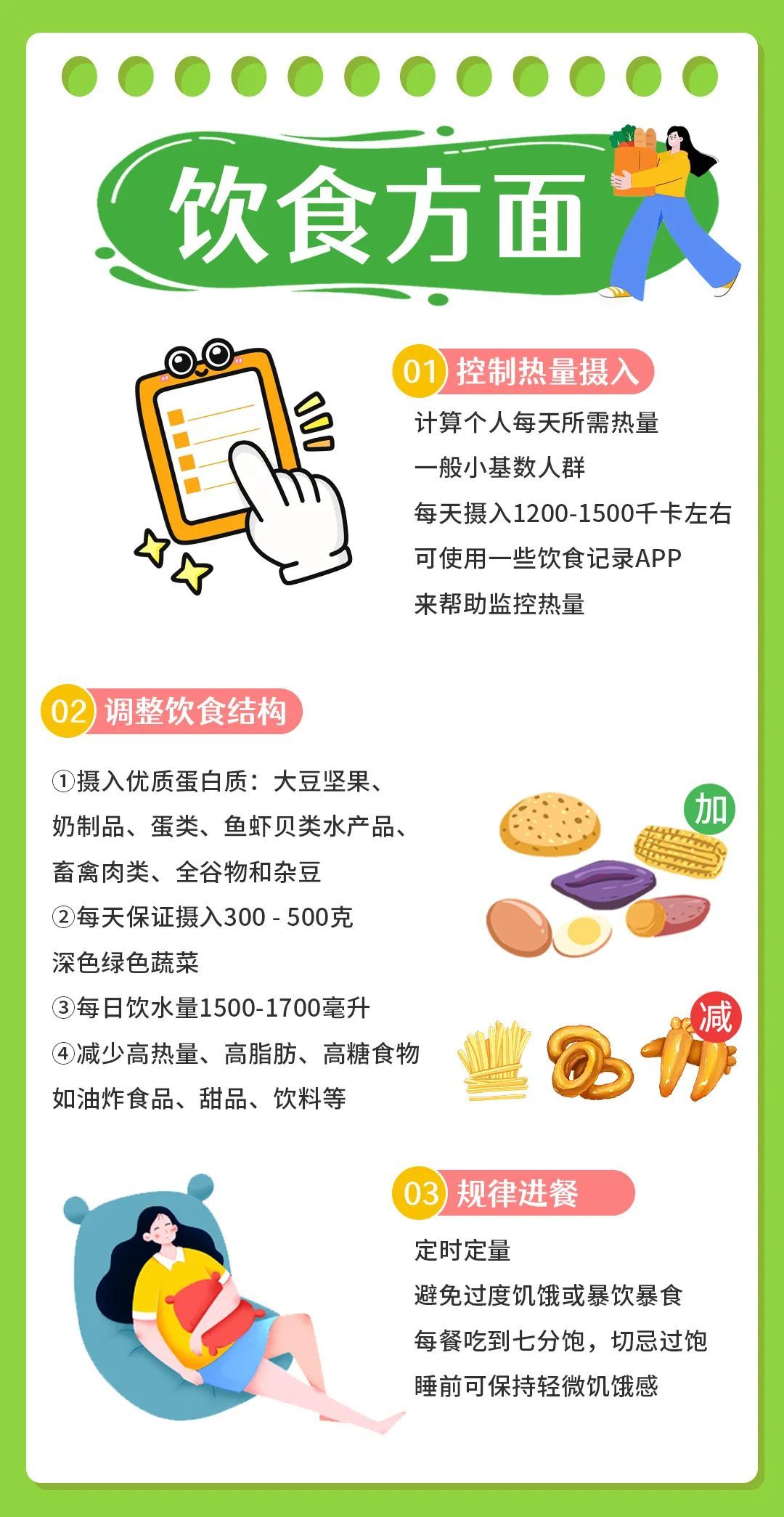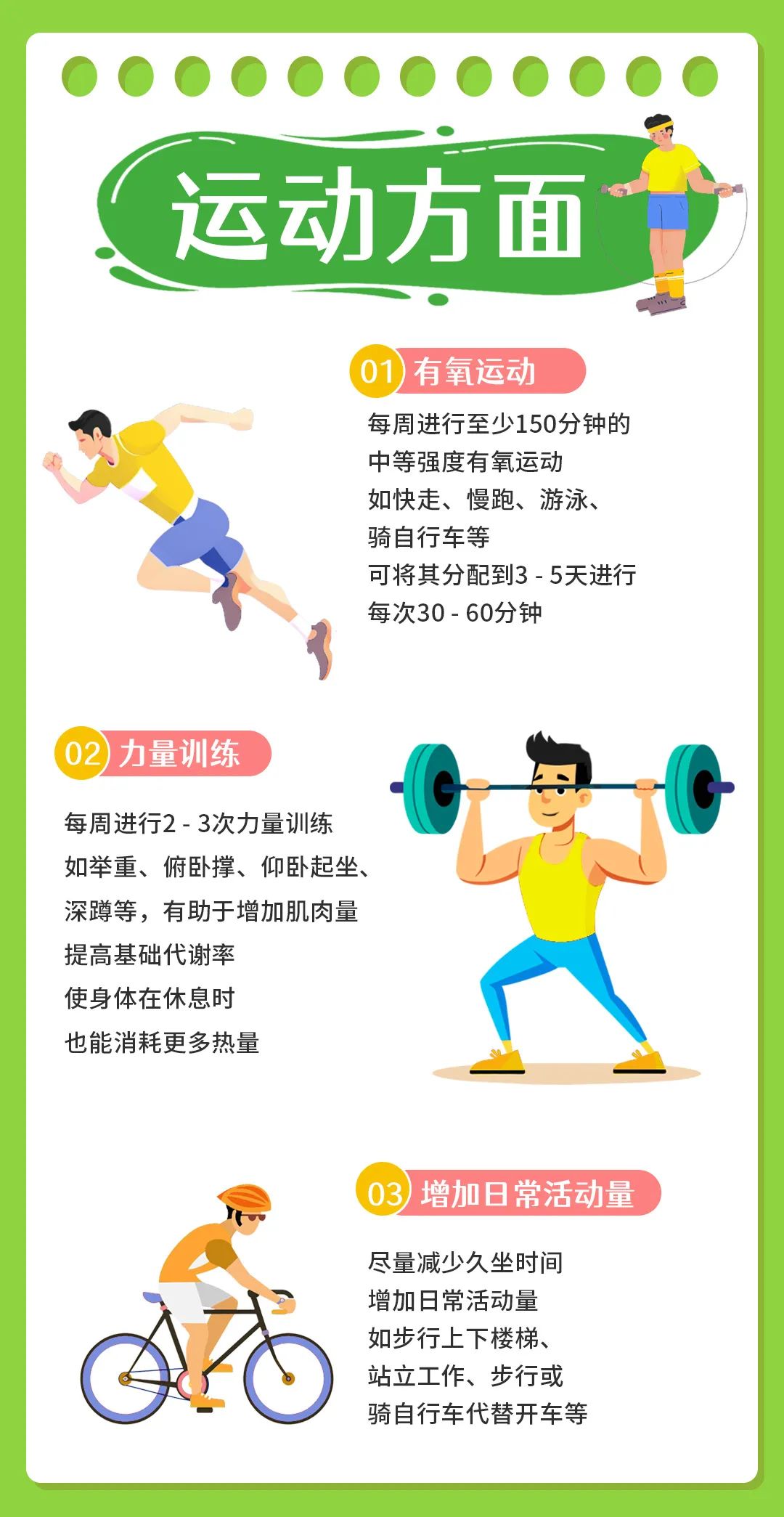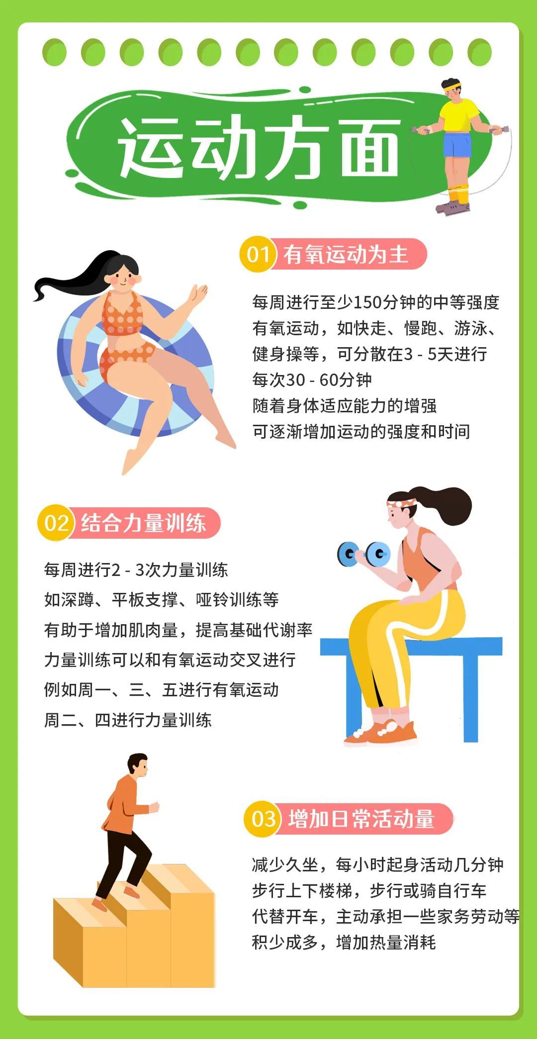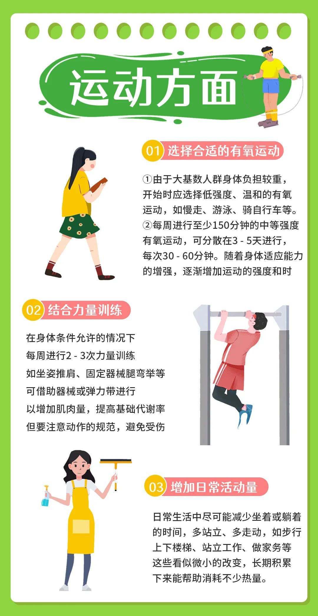 中基数人群需更注重体重管理,逐步改善身体状态,可从以下几个方面入手:
