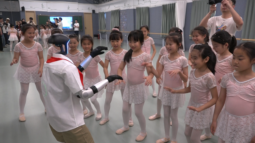 随后,机器人走进舞蹈教室,与社团学生共舞,享受快乐时光。
