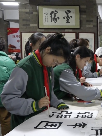 在志愿者的带领下,学生用扭扭棒做蝴蝶、戒指、小香包,临摹经典字帖,在手工活动中释放压力,获得快乐。