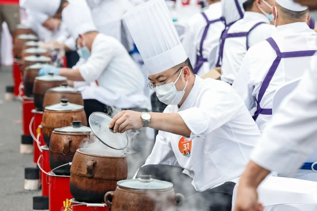 武汉上演“百人百炉百厨同煨排骨藕汤”的大比拼。(湖北日报全媒记者 倪娜 通讯员 周王 马学东 摄)