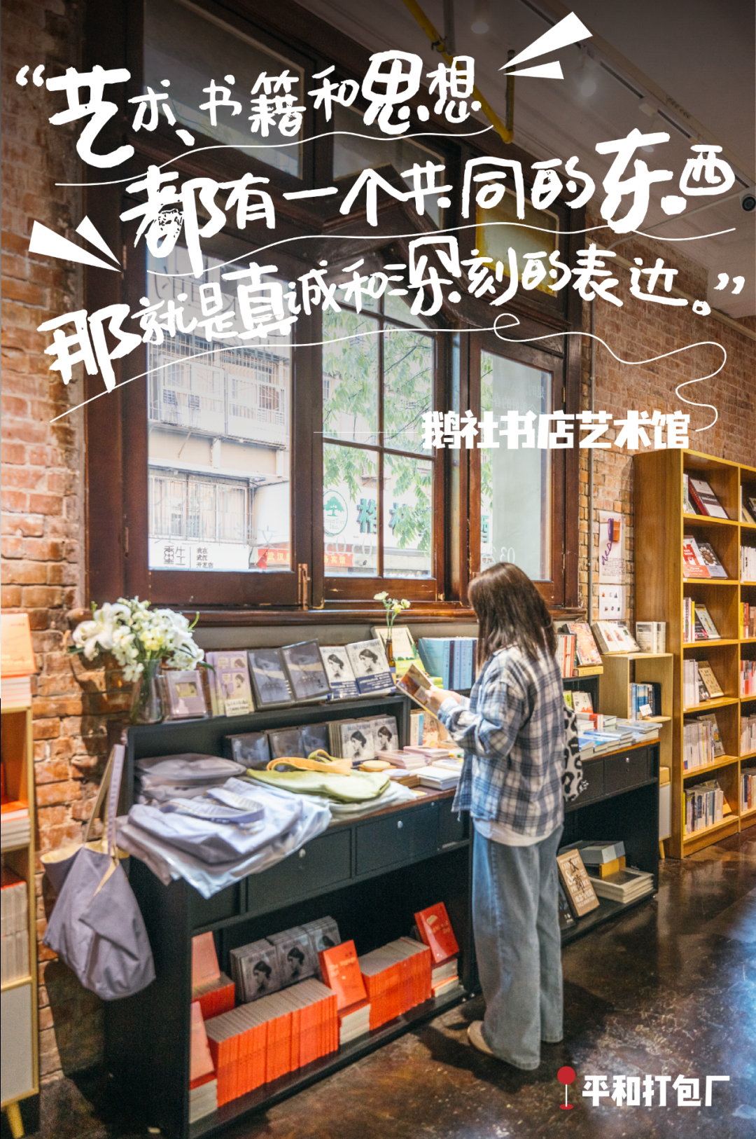 以鹅社书店艺术馆的诞生为例,恰似开始一场由青年主导的时空对话。他们以“新意”为砖瓦,重构老厂的空间设计感;以书籍、艺术为语言,在工业遗址的骨骼上建造精神的乌托邦。