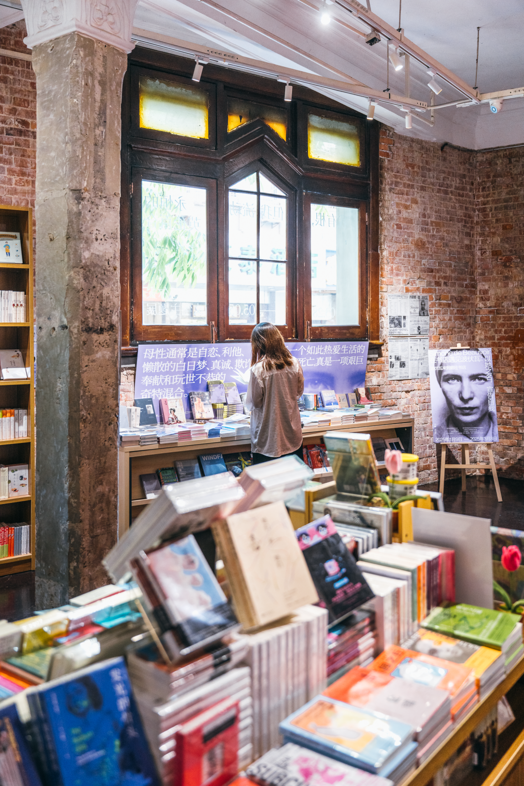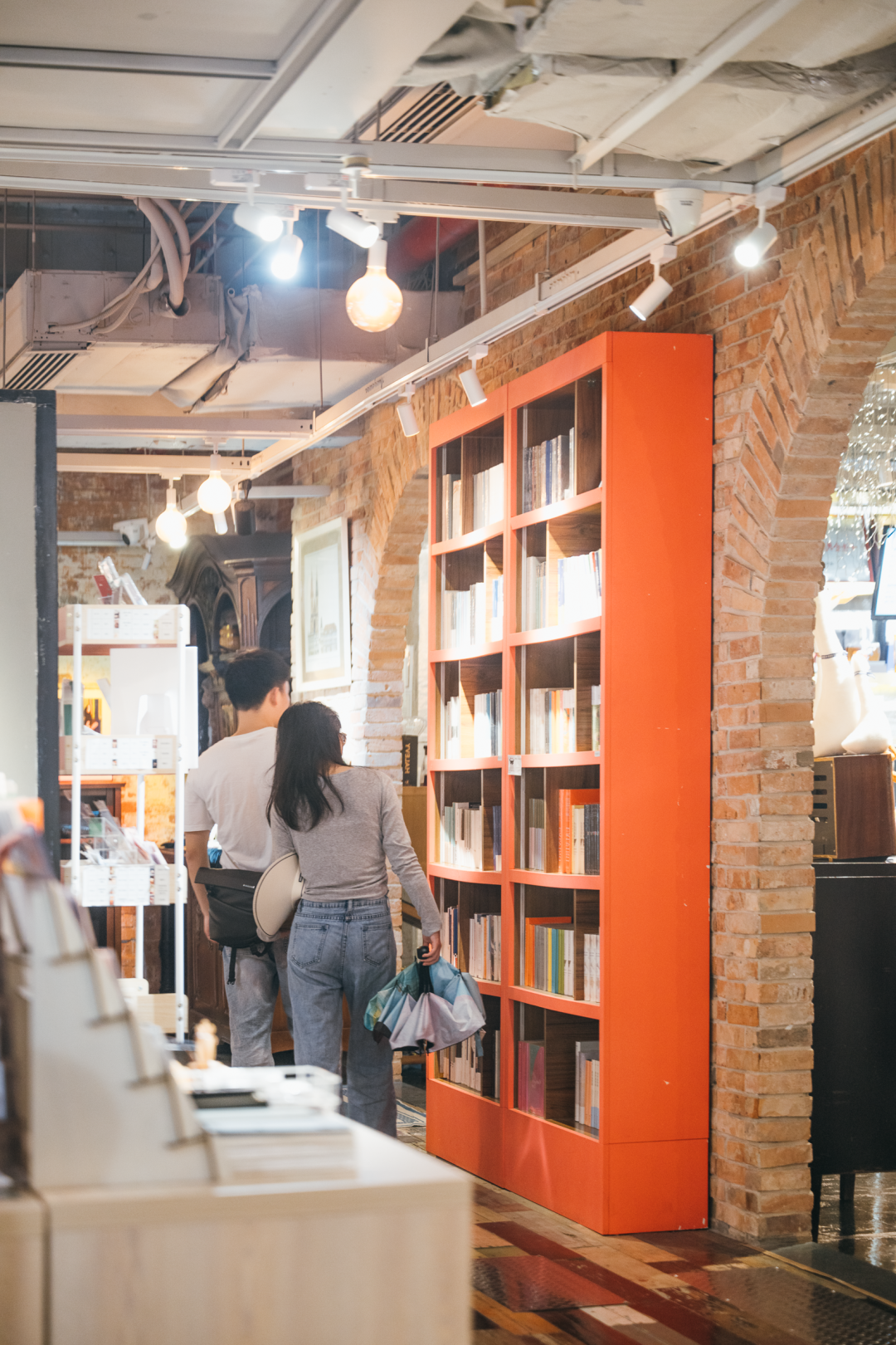 往里走,暖黄灯光洒在书架上,激发着陈列书籍的墨香。看复古工业风空间与现代艺术展览相互映衬,便能于此收获时光的静谧与感受文化的沉淀。