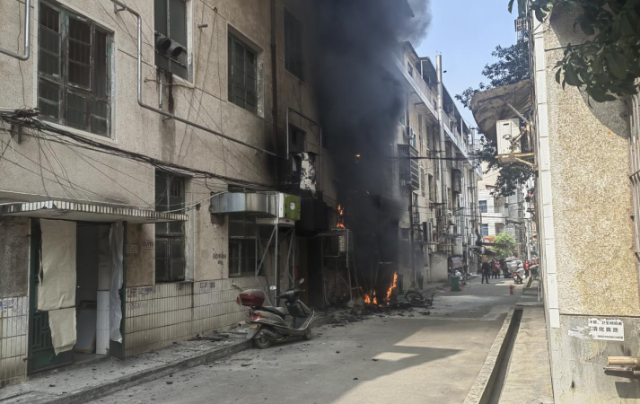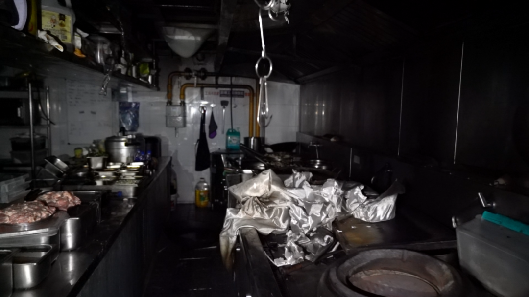 2023年3月15日,湖南衡阳,一饭店厨房外部油烟机起火,起火原因是厨房外部线路故障引燃了油烟机上的油垢,而火势顺着油烟机管道蔓延至房屋二楼。消防救援人员到场后,经过半个小时紧张扑救,才将大火成功扑灭。