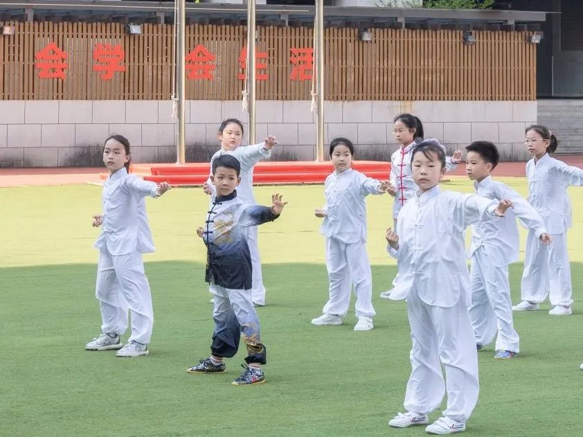 作为全国武术进校园试点校,该校在大课间推出学校自编武术操,将武术融入日常,既强身健体,也让传统文化在孩子们心中生根发芽。