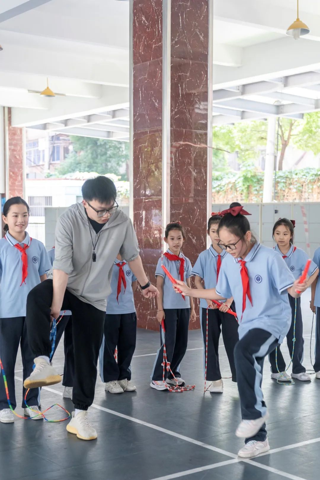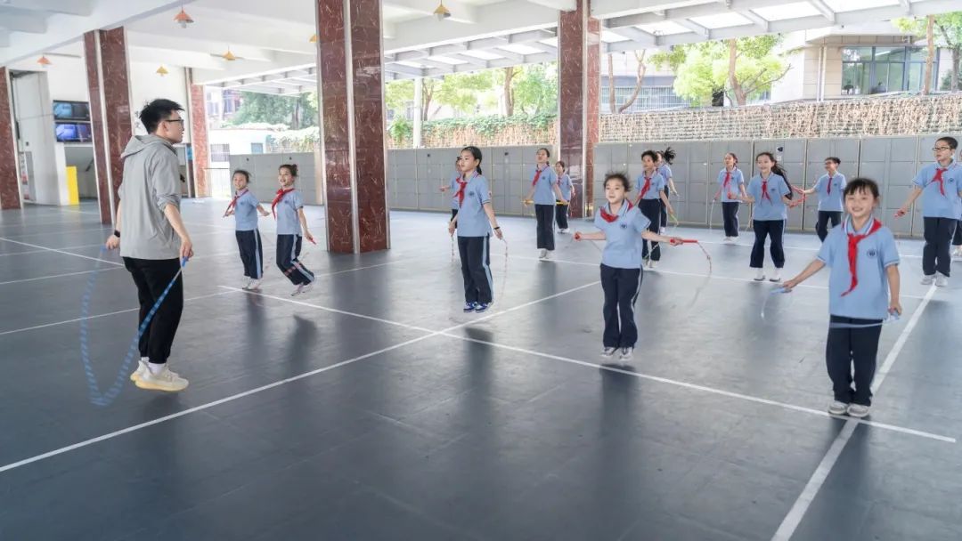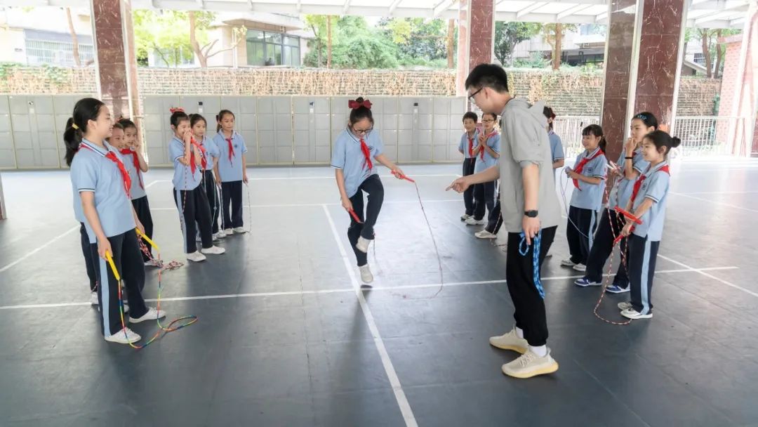 一、二年级练基础,三年级学“双人一绳”,四年级挑战“多人交互”,五、六年级编创花样绳操。每学期末的“绳王争霸赛”上,各班学生在创意、速度和花样上进行热烈比拼。