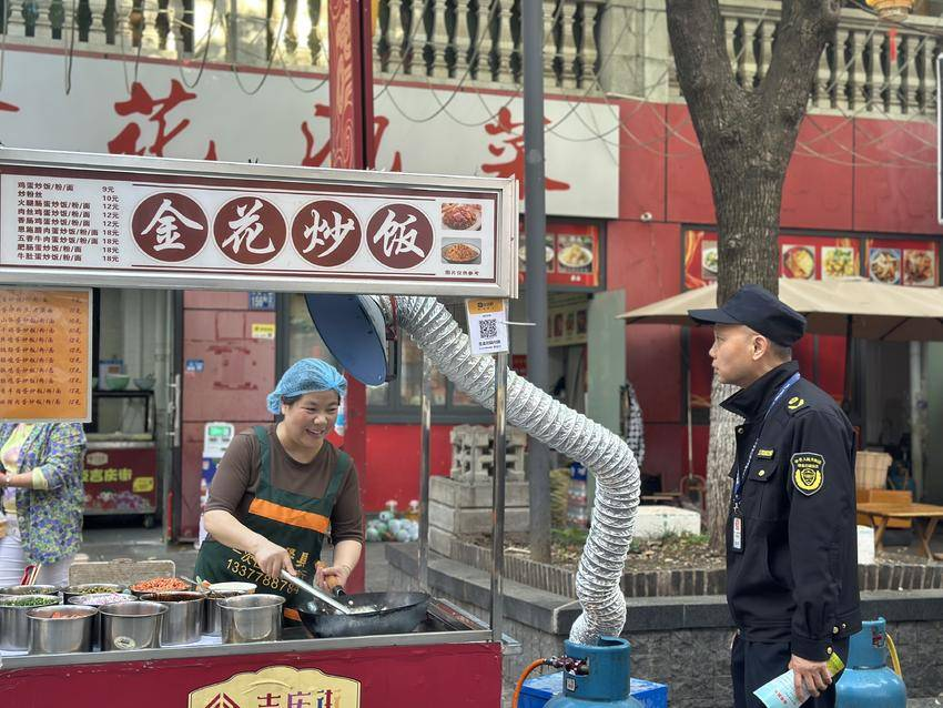 区城管局在大智街道吉庆街夜市开展油烟防治工作。帮助商户安装便携式油烟净化器,并通过发放宣传手册等方式,持续引导商户规范经营,实现文明与烟火气的和谐共生。