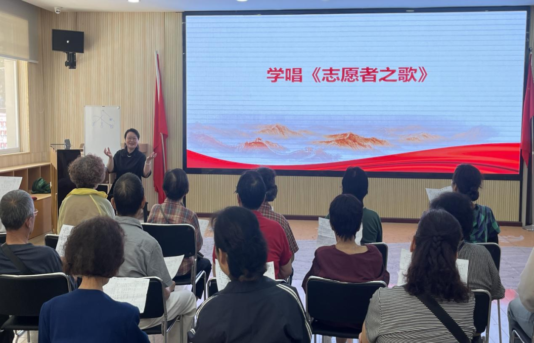 劳动街道艺苑社区开展“艺”起学习系列之党员教师公益教唱活动,特邀资深音乐教师教学《志愿者之歌》,20余名社区银发志愿者参与学习,通过艺术传播志愿服务精神。