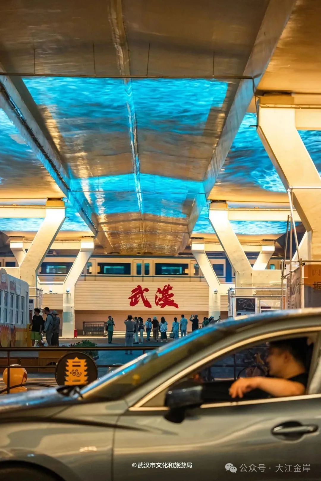 在黄浦大街的长桥二桥引桥下,可以看到1号线轨道两侧分别写有大大的“武汉”和“江城”。每隔几分钟有一列列车驶过,像港风电影一样,氛围感满满。