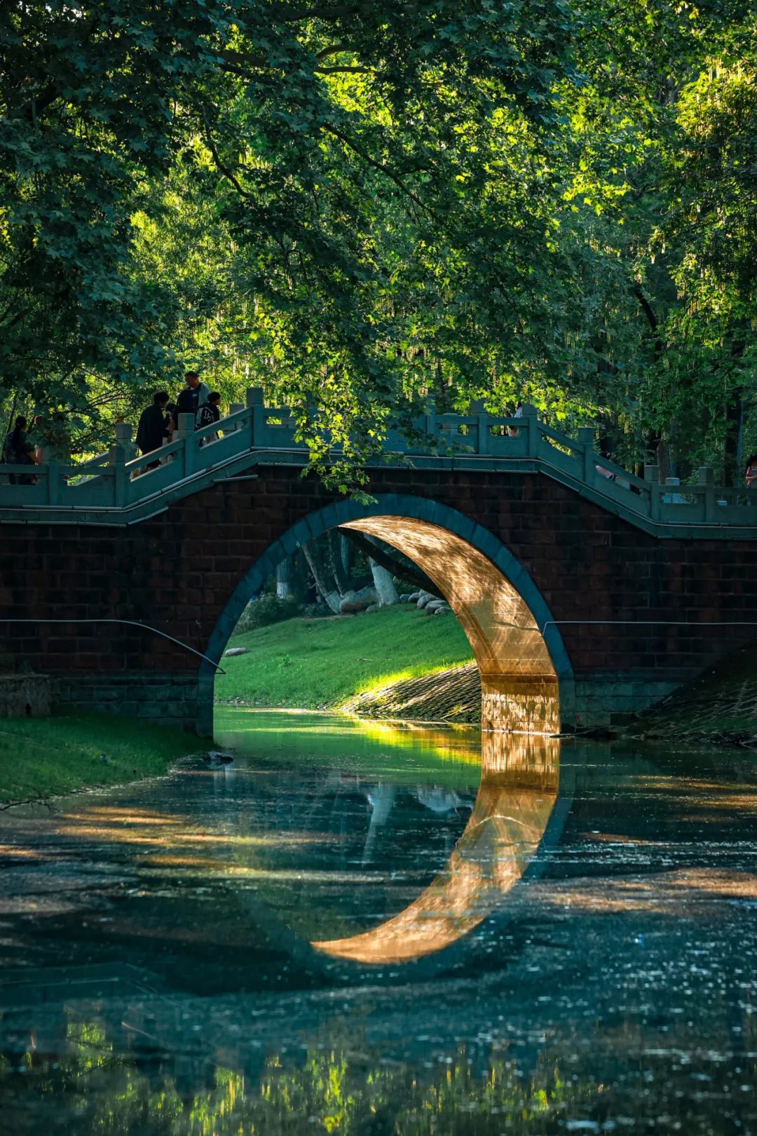 最近有网友发现,傍晚时分,阳光和水面反光会照亮解放公园拥翠桥的桥洞,在特定角度下可以看到“月亮从水面升起”,像一幅油画。