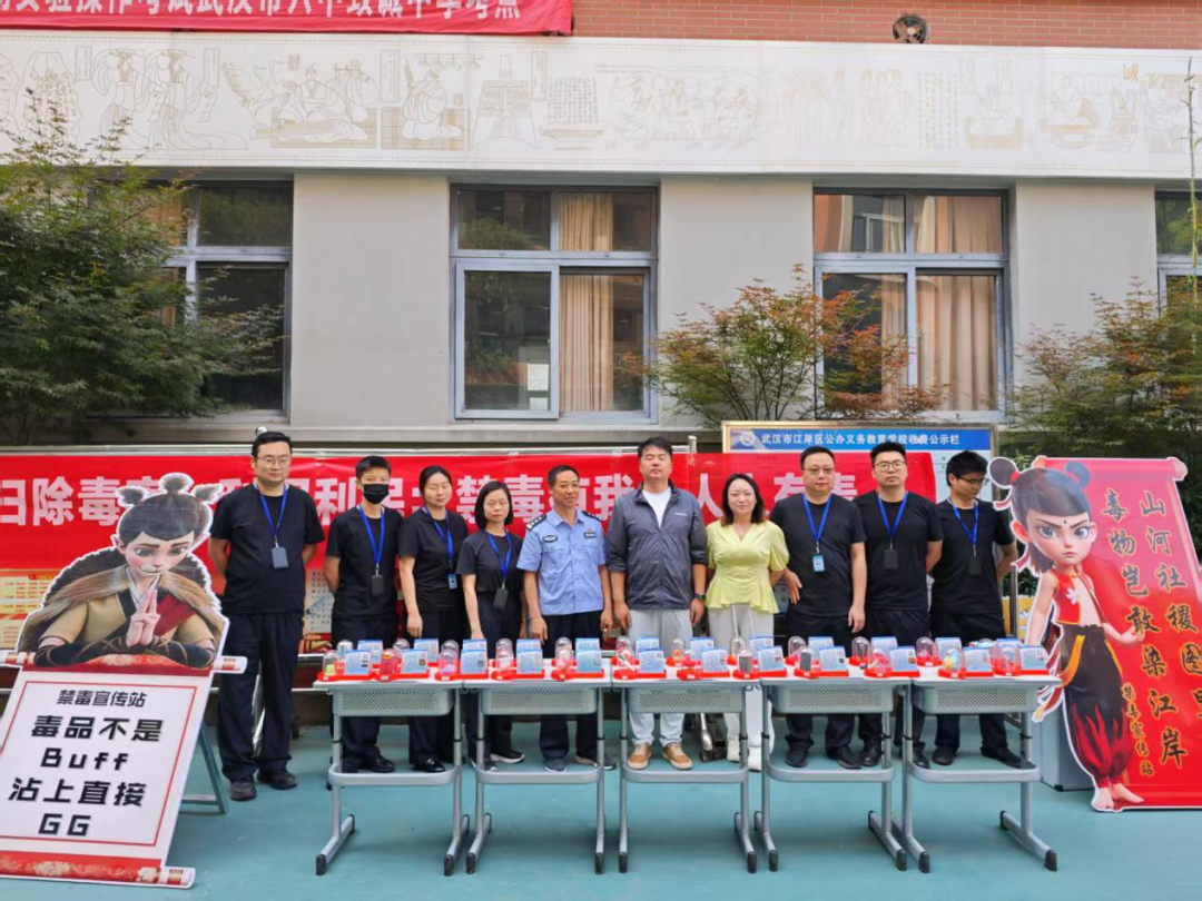 西马街道社区戒毒康复中心联合高雄社区、西马街派出所及司法所在武汉六中致诚中学开展禁毒宣传活动。通过仿真毒品展示、案例讲解等形式,提升学生识毒、防毒、拒毒能力。