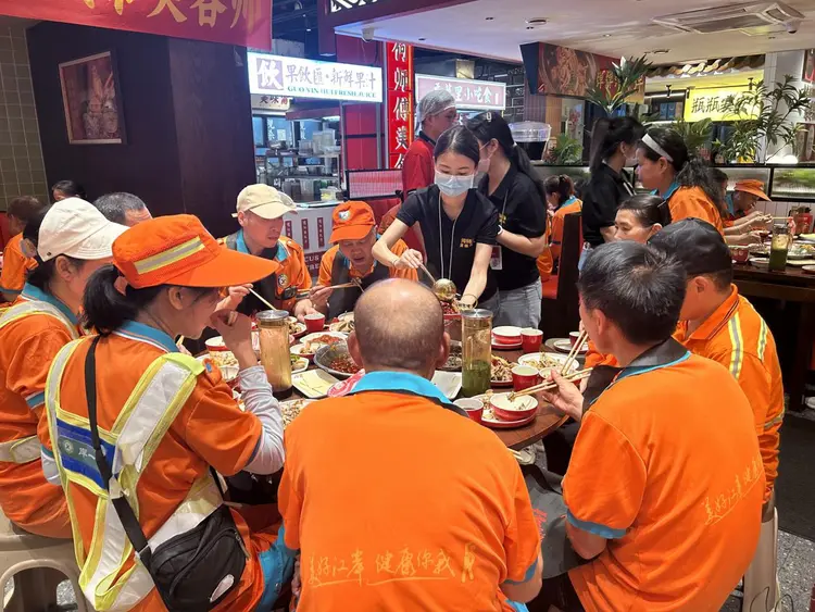 大智街道联合爱心企业何师傅美蛙鱼头开展“致敬最美城市美容师”公益活动,为武汉岸一清环卫公司80余名环卫工人提供免费餐食。同时品牌所有门店于每日14:30到16:30,为环卫工人提供休息场所和酸梅汤,传递社会关爱。