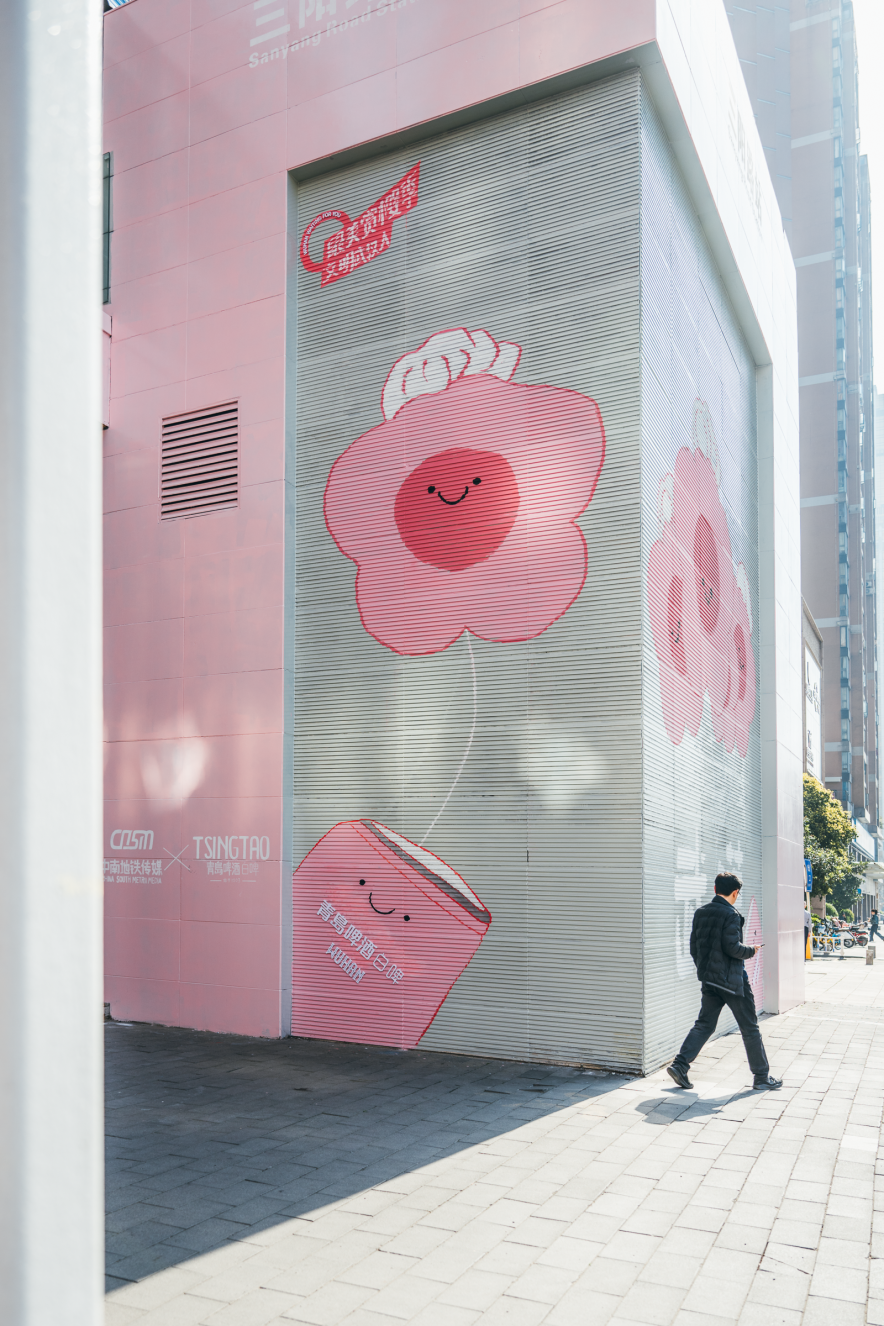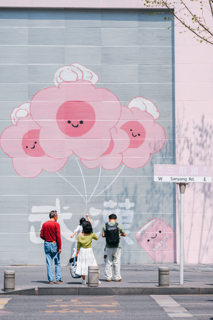 当武汉美术馆(汉口馆)的“惊叹号”渐褪,三阳路地铁A口的樱花涂鸦墙正浪漫盛放,与斑马线形成奇妙碰撞,随手一拍就是青春片剧照。