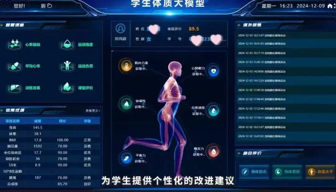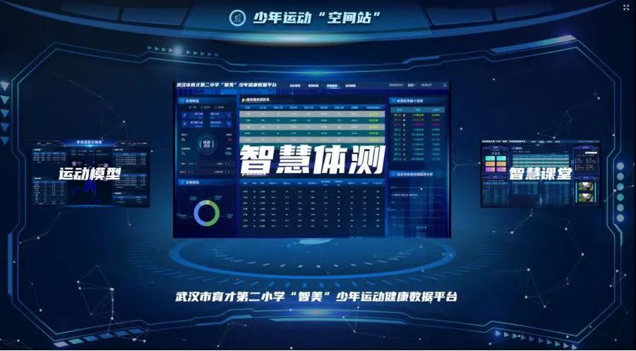 这是中体慧晟与武汉市育才第二小学深度合作的智慧化体育教育经典案例——通过AI技术分析学生的运动兴趣与完成度,用人脸识别系统、佩戴手环等设备实时监测学生健康运动数据,搭建完整的学生健康档案管理平台,构建起智能化体育教育评价体系。