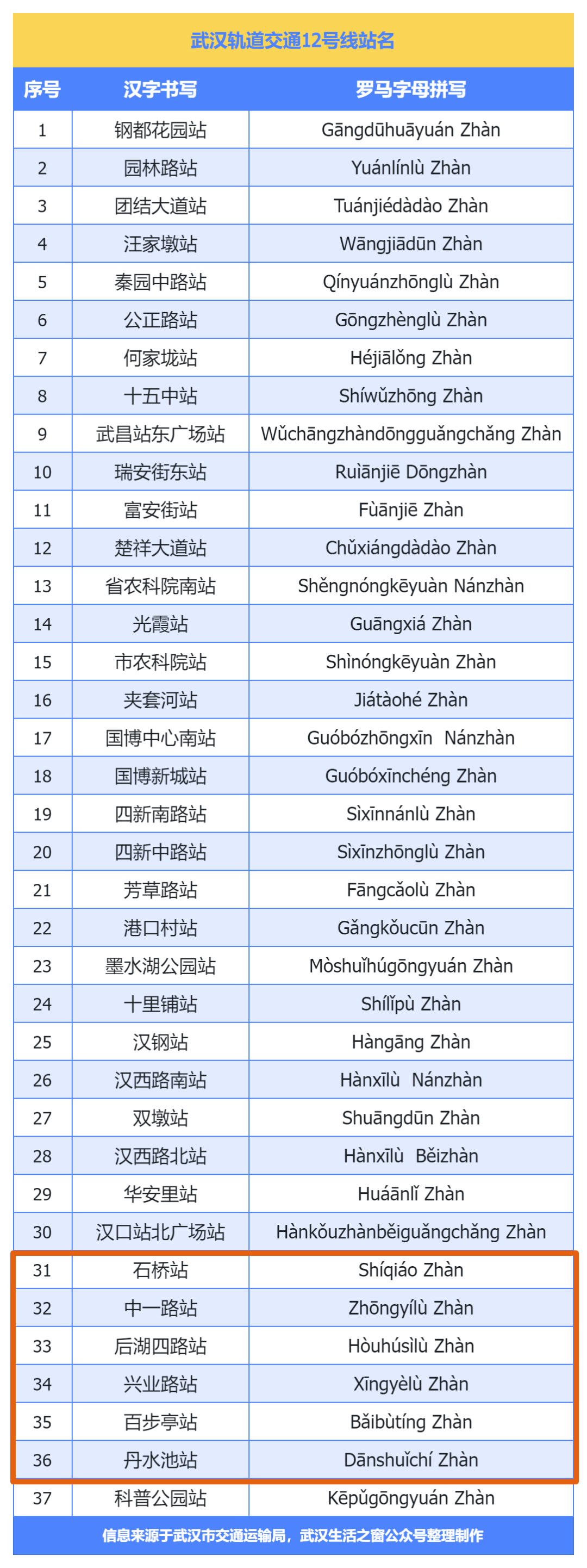 37座车站的站名