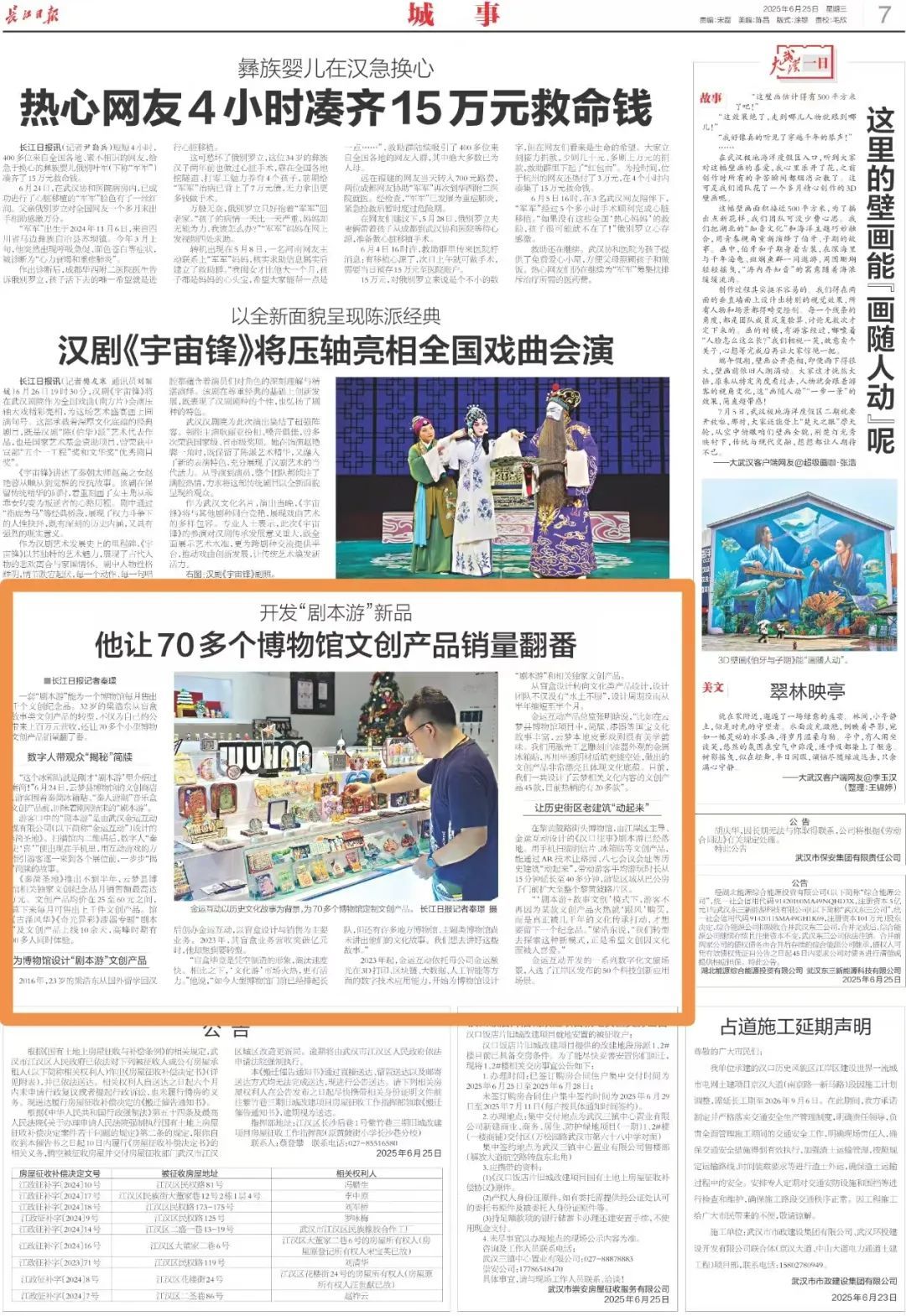 在黎黄陂路街头博物馆,由江岸区主导、金运互动设计的《汉口往事》剧本游已经落地。用手机扫描明信片、冰箱贴等文创产品,能通过AR技术让珞园、八七会议会址等历史建筑“动起来”,带动游客平均游玩时长从15分钟延长至40多分钟,游览区域从巴公房子门前扩大至整个黎黄陂路片区。