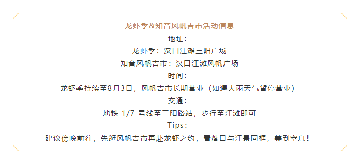 这个夏天,来汉口江滩,用一顿小龙虾点燃夏夜,用一场市集拥抱烟火,用一次沉浸式体验感受江岸的滚烫活力。