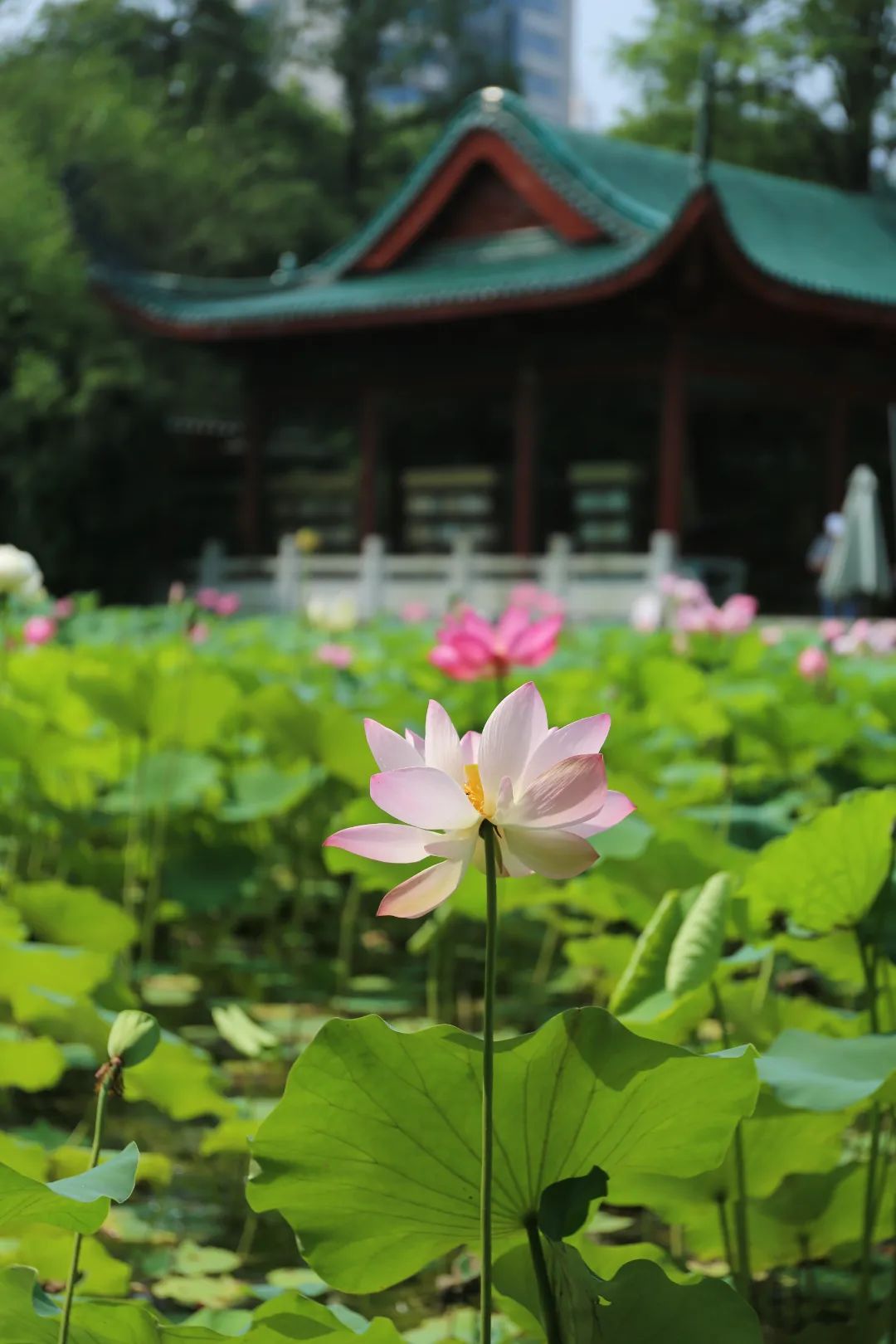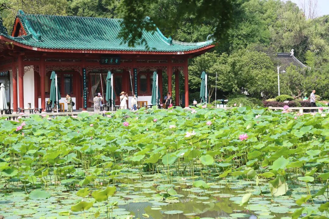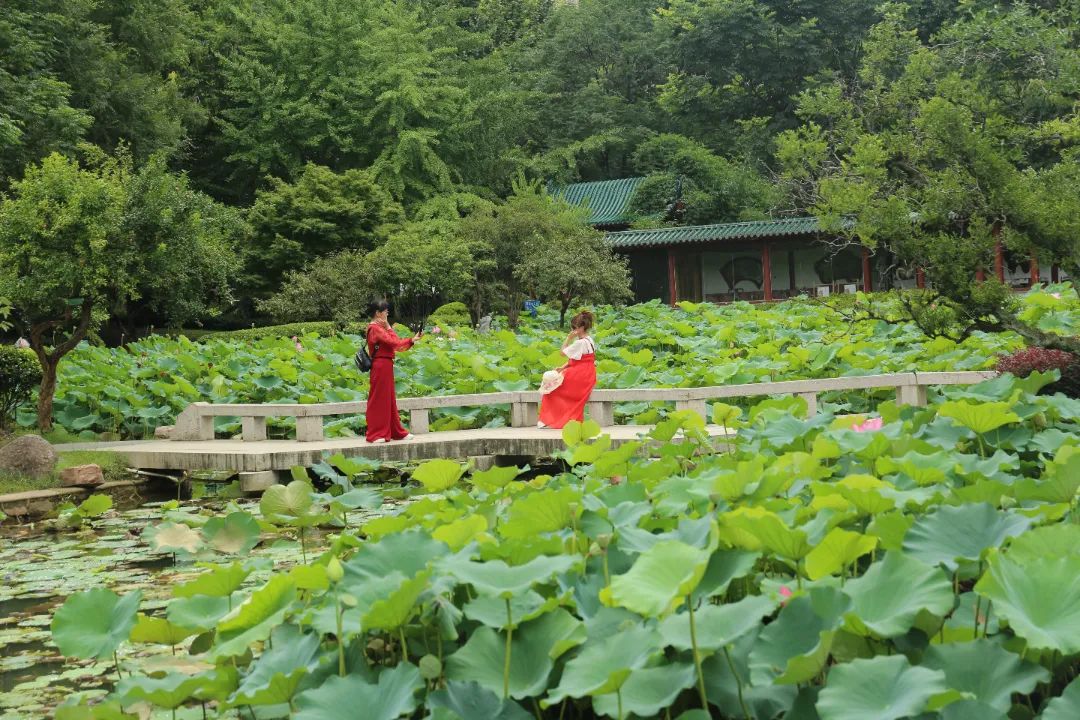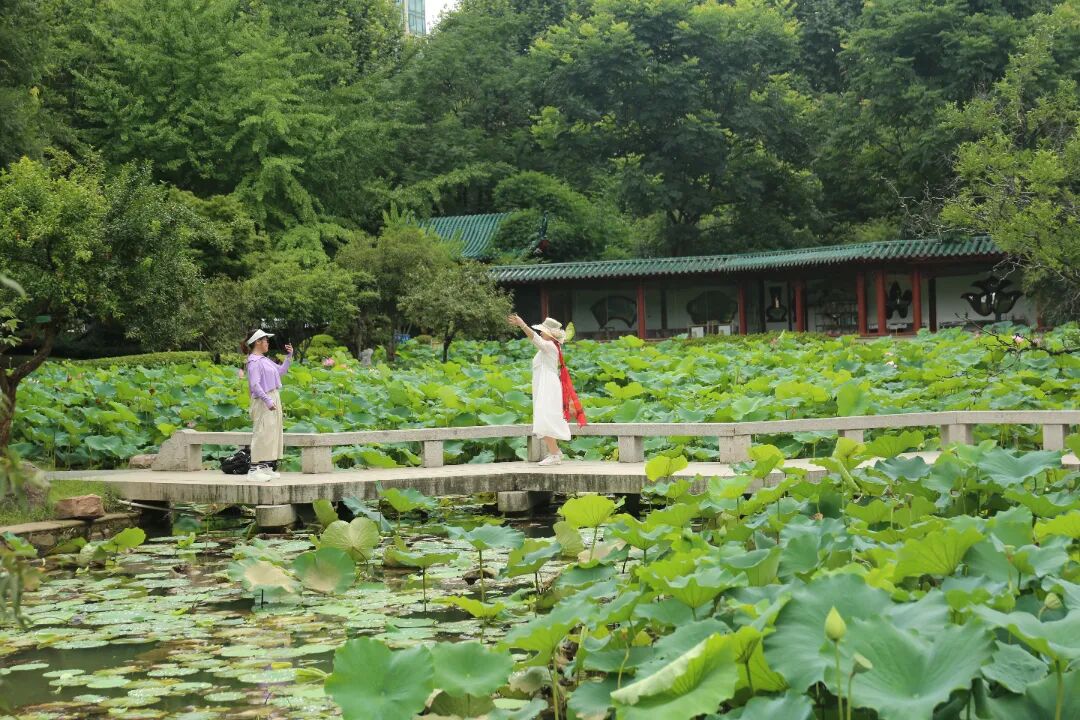 解放公园拥有武汉市中心最大荷塘,这里的荷花品种丰富 还有罕见的双色睡莲!站在石桥上拍照,能拍出"接天莲叶无穷碧"的意境,特别适合拍照打卡~