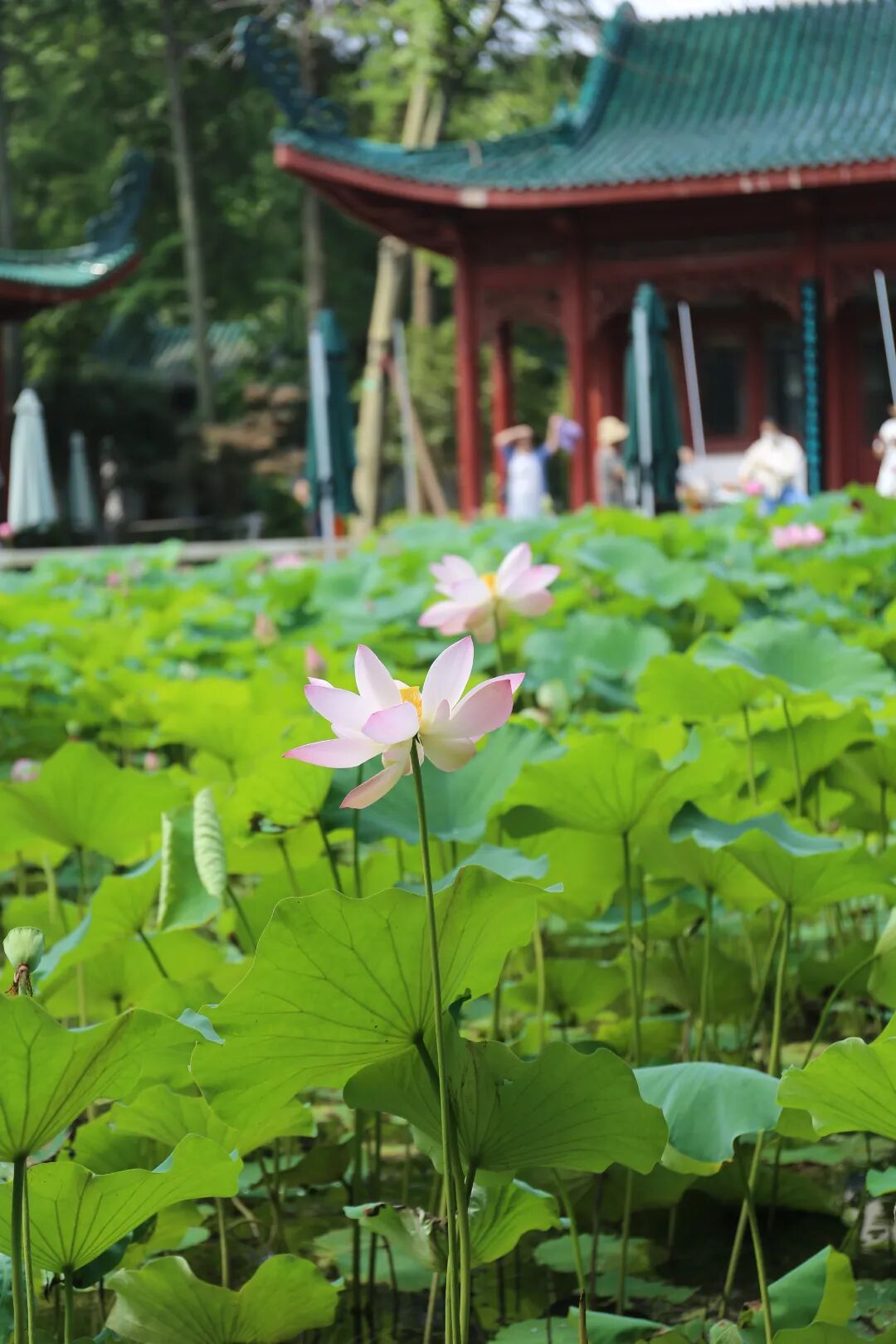 宝岛公园的荷花与湖中央的古典园林建筑相映成趣,随手一拍就是古风大片!有时间来散散步,荷香伴着微风,超级治愈~