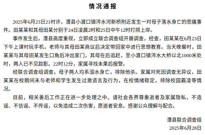 澧县联合调查组发布情况通报