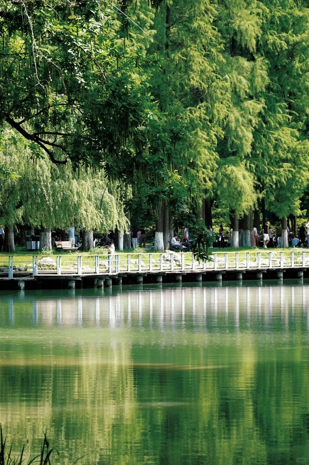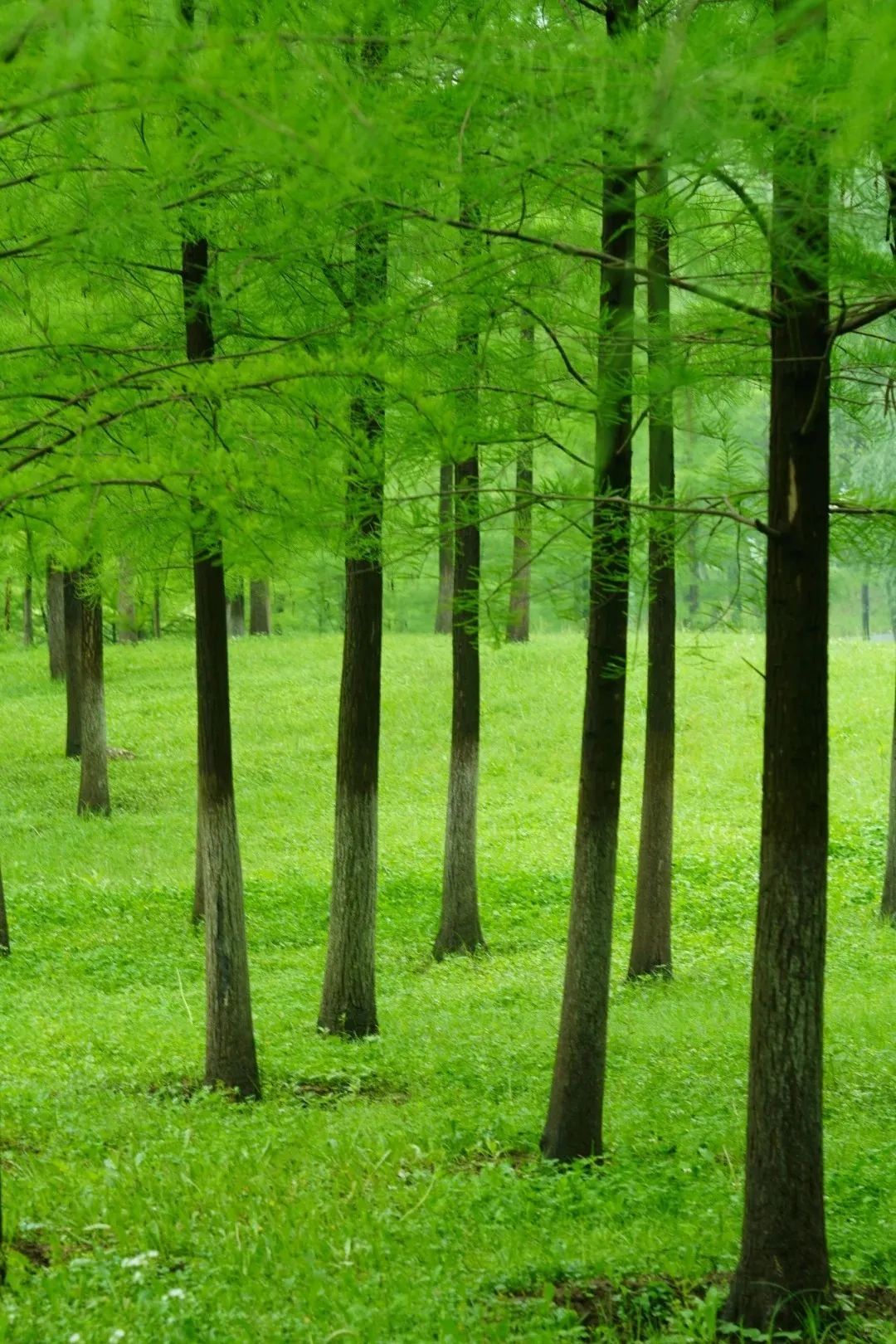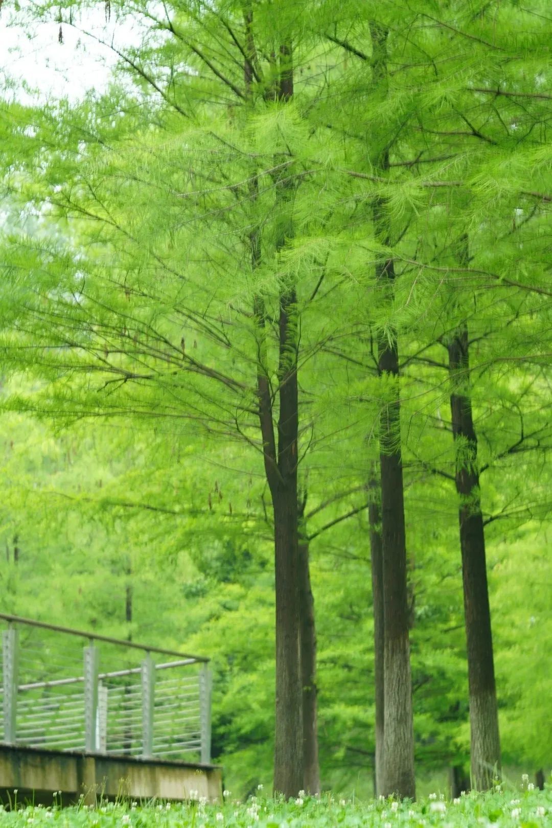 利用水面倒影构图,人物坐于水边木栈道或凭栏远眺,捕捉水杉林纵向的延伸感与宁静感。