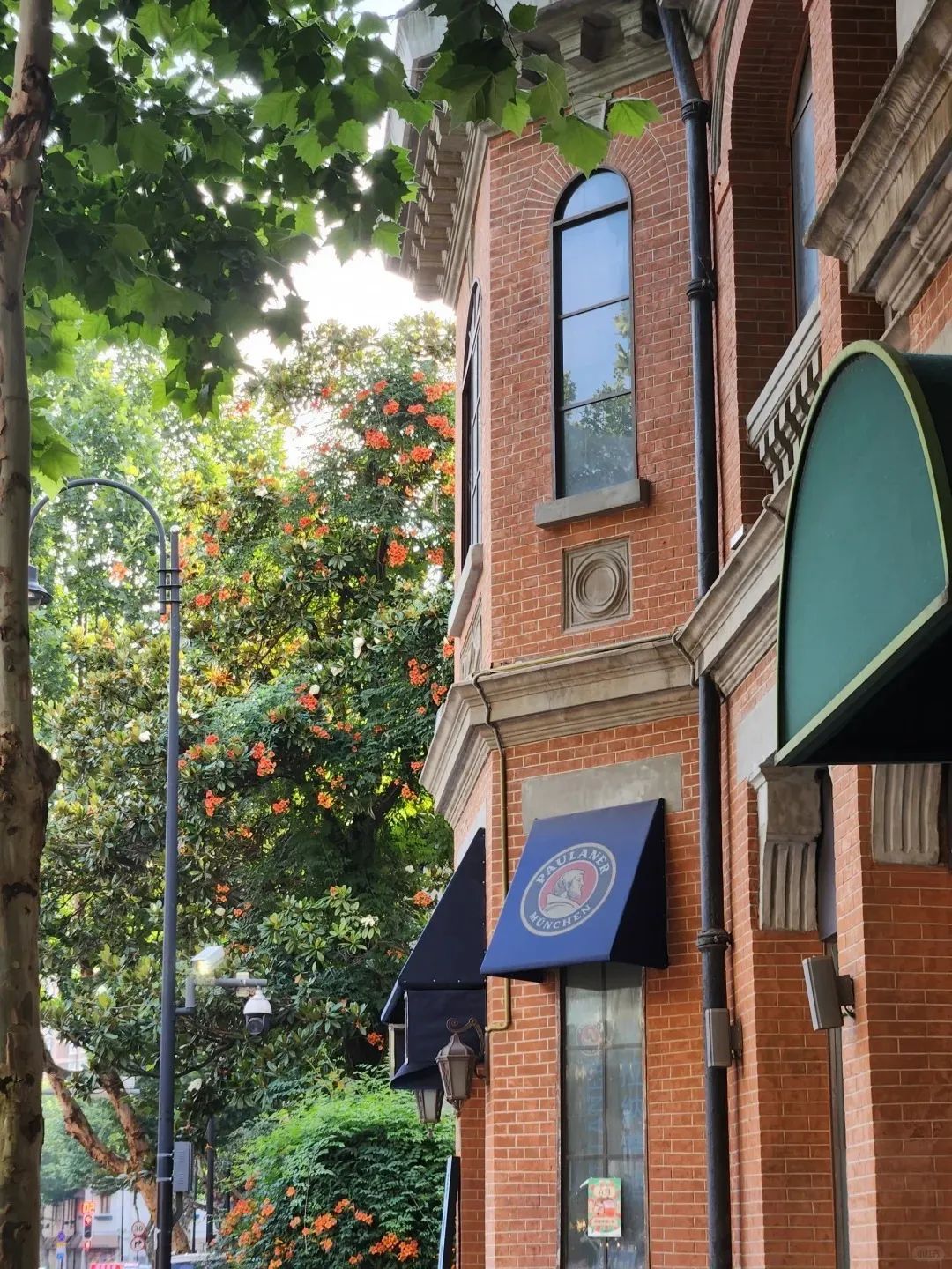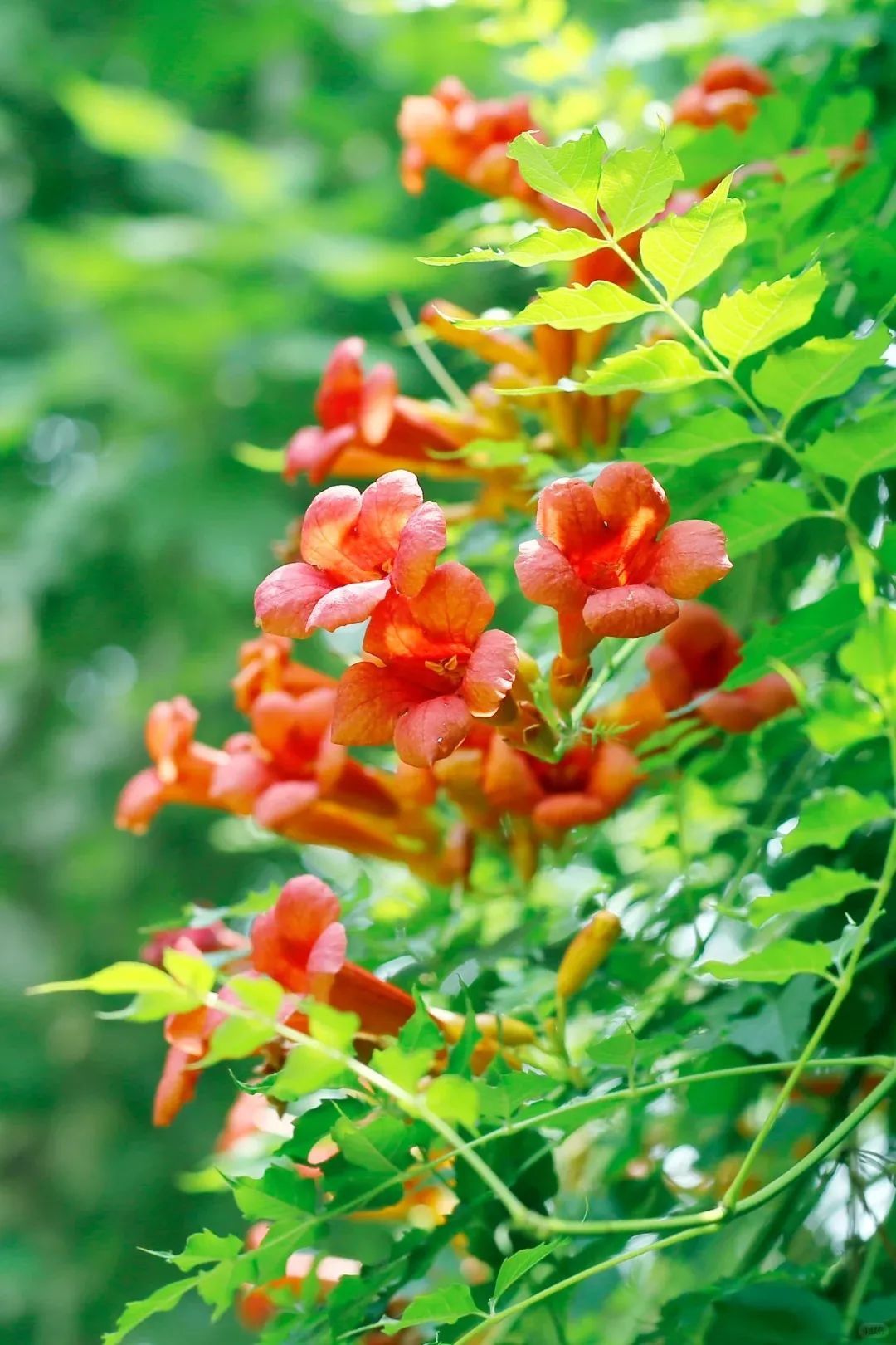 以建筑一角和凌霄花为背景,人物拾级而上或于街角回眸,拍出照片的故事性