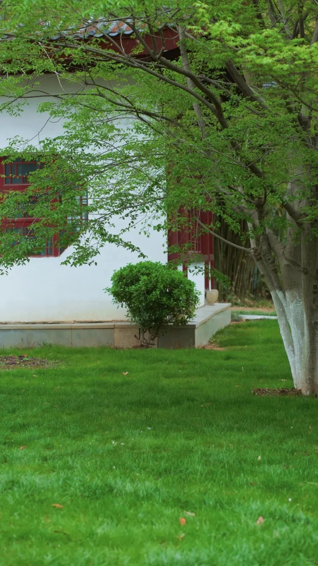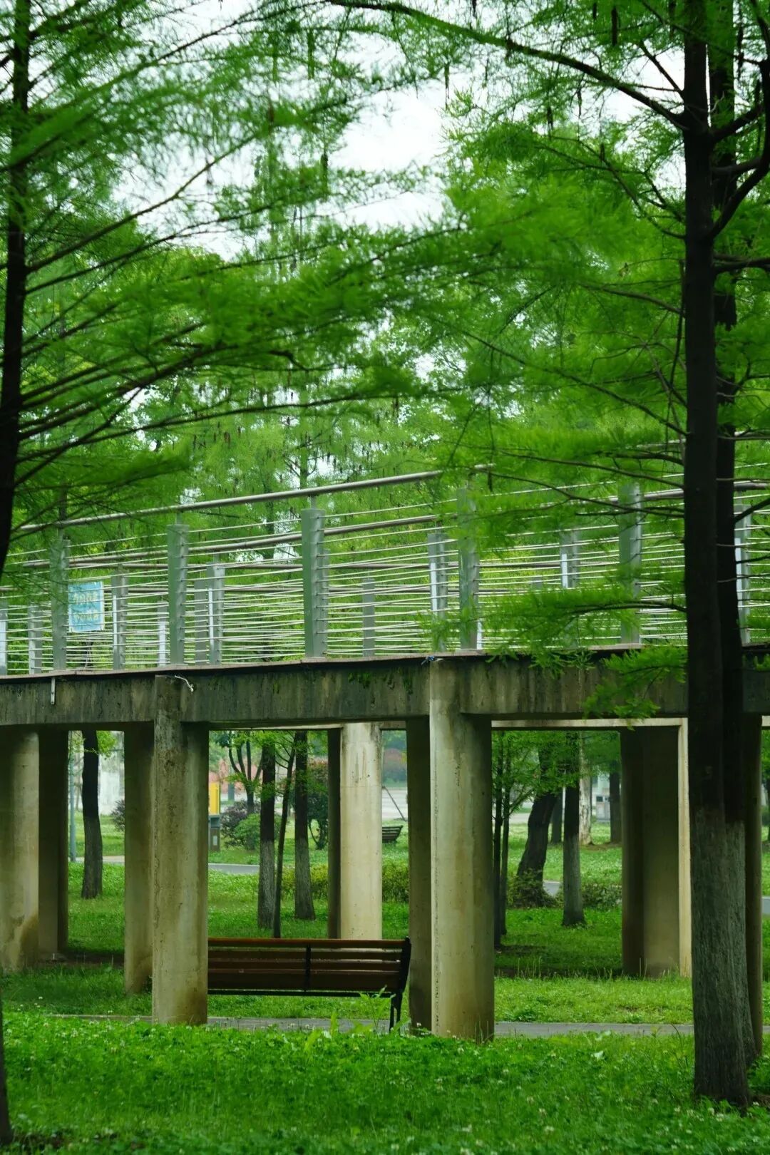 3.多用连廊、树影做框架式构图,强调绿意与空间感