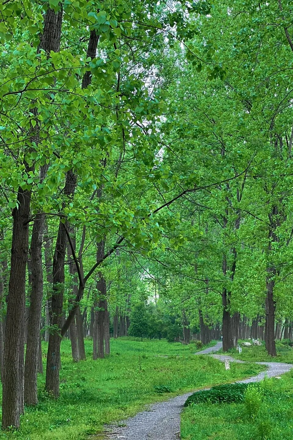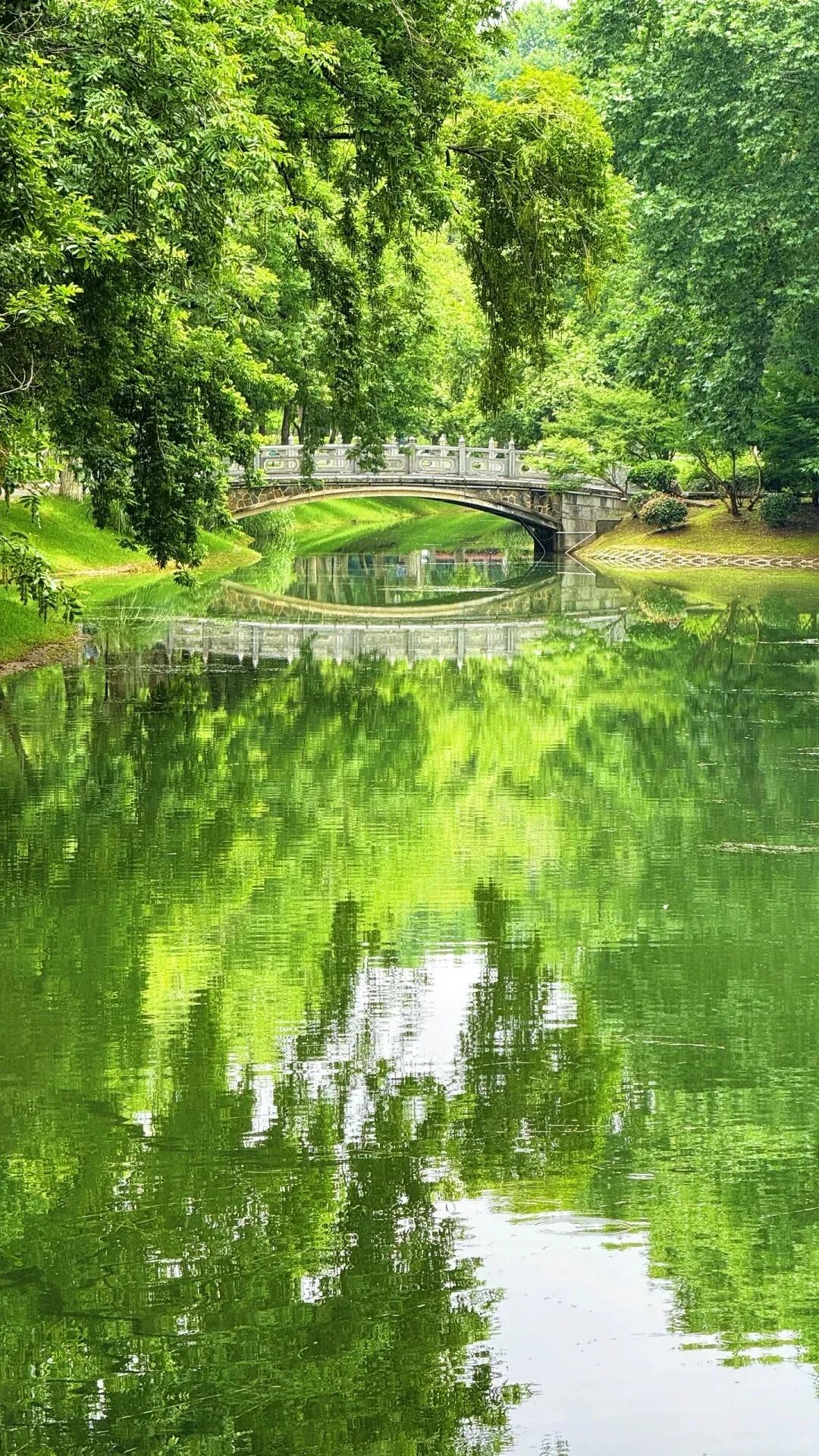 繁茂的树冠在空中交织成深邃的绿色穹顶