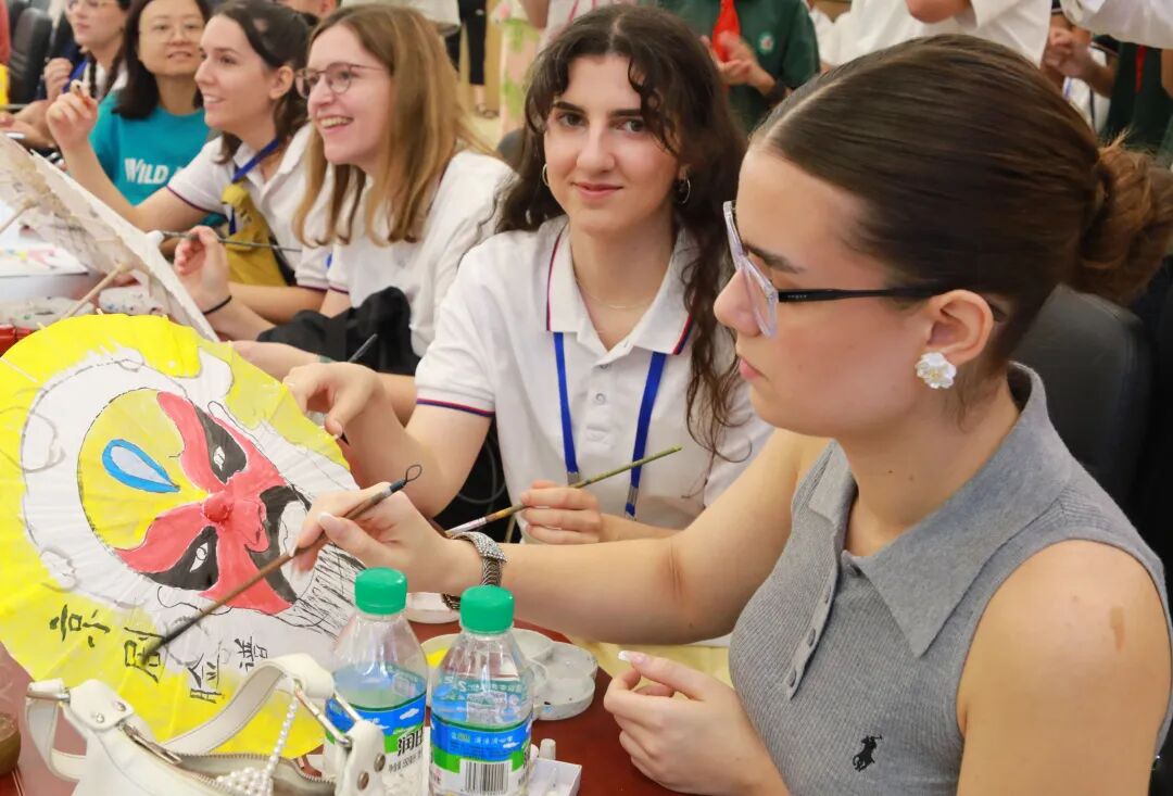 多功能活动室里,中外青年并肩而坐,在社区志愿者的带领下,学习在油纸伞作画、制作香囊、书法等。武汉市汉铁初级中学709班学生朱烨蕊和张堇昕向身旁的巴西学生雷舒涵介绍了剪纸、漆扇等传统工艺的精妙。雷舒涵听后意犹未尽,现场与同学们添加微信,准备继续探讨剪纸技巧。朱烨蕊在交流中感叹,“文化交流是中外青年交流非常重要的方式。在这个过程中,我不仅锻炼了英语口语,也在分享知识的同时深化了自身对传统文化的理解。”