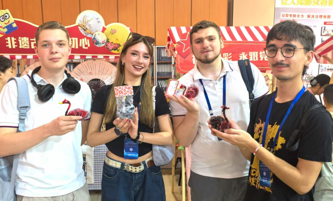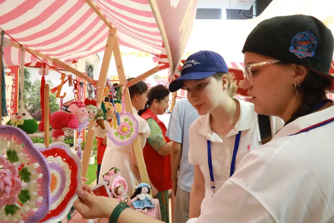 在社区党委书记带领下,国际学生聆听志愿服务队的暖心故事——“抱抱团”传递邻里温情,“九哥巡逻队”守护社区安宁,“绿色驿站”播撒环保理念。在大厅的文创公益集市,他们兴致盎然地欣赏居民制作的手工艺品。
